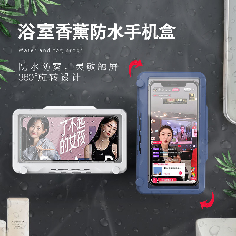 Bathroom waterproof mobile phone box bathroom wall hanging free punching rotatable fashion chasing drama artifact anti-fog bracket