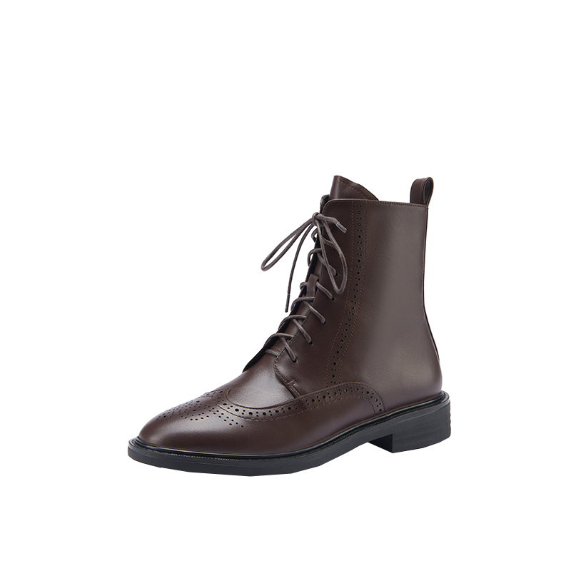 Marolio is rare to get goods ~ Block carving flower Martin boots new coarse-heeled head zipper boots 3cm
