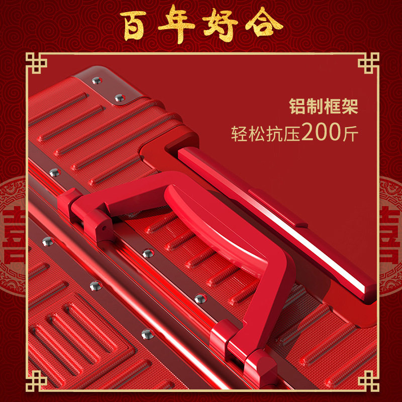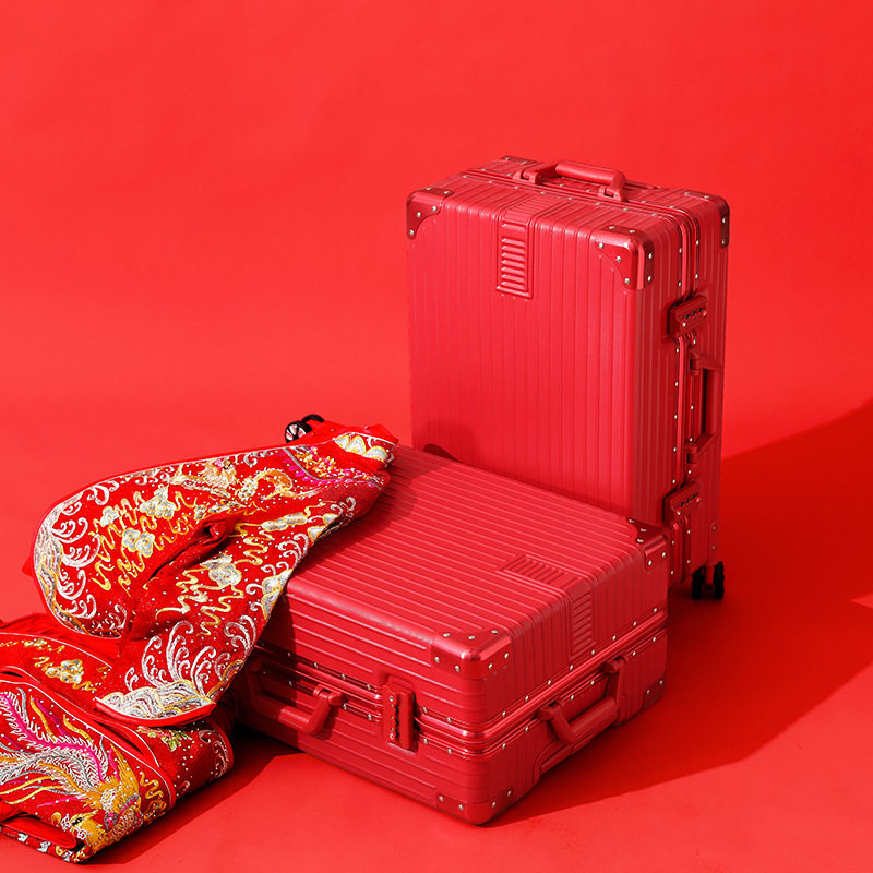 Big red suitcase female wedding box dowry box female trolley box wedding bride dowry box press box leather luggage
