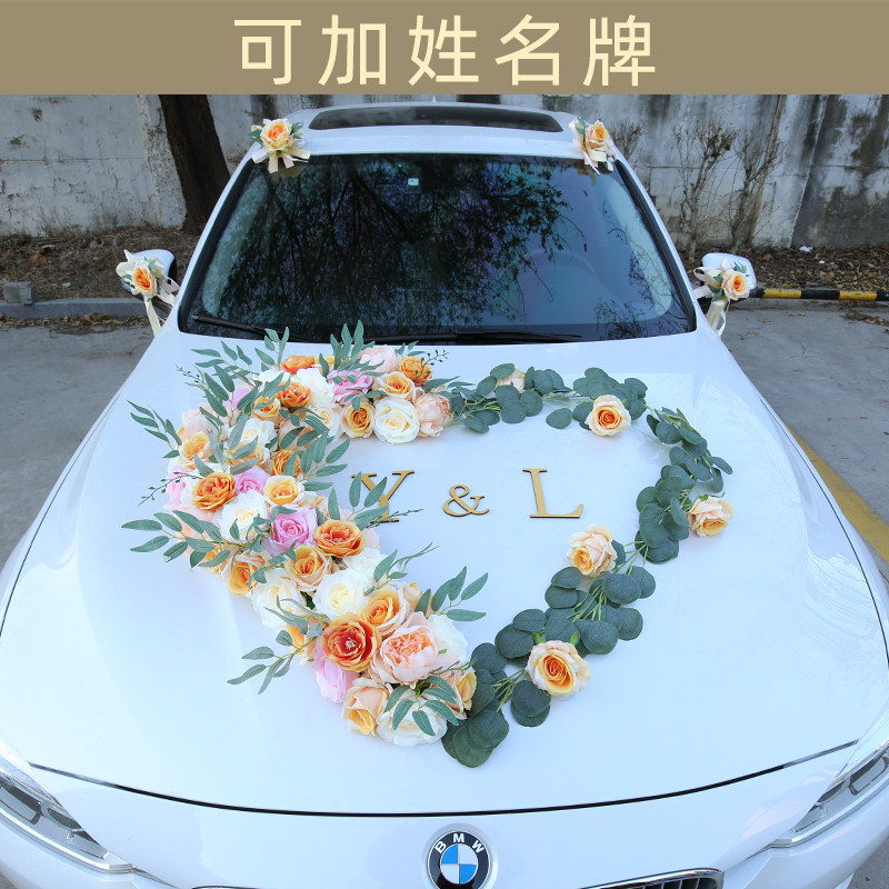 Champagne color simulation main car head wedding car decoration supplies wedding arrangement set heart-shaped new high-end small red book