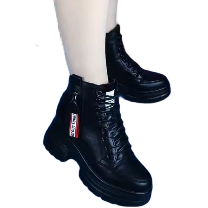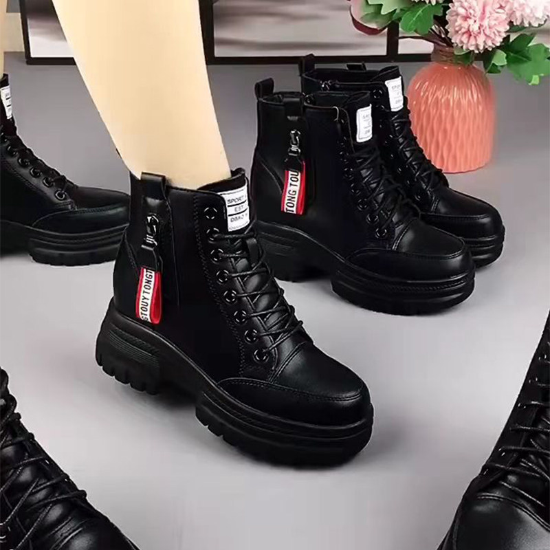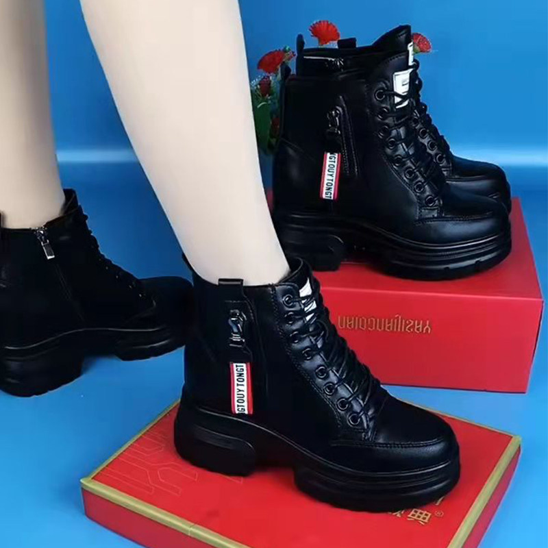 Women's 2022 winter new all-match short boots with leather inner heightened snow boots plus velvet and thickened cotton boots for women