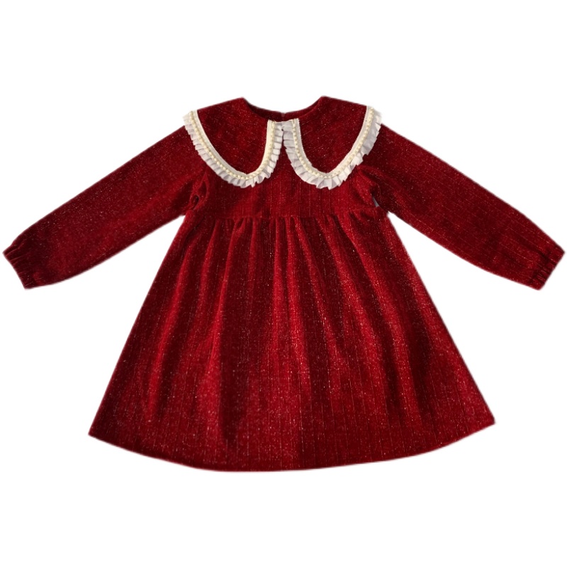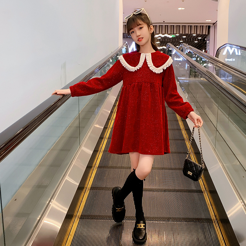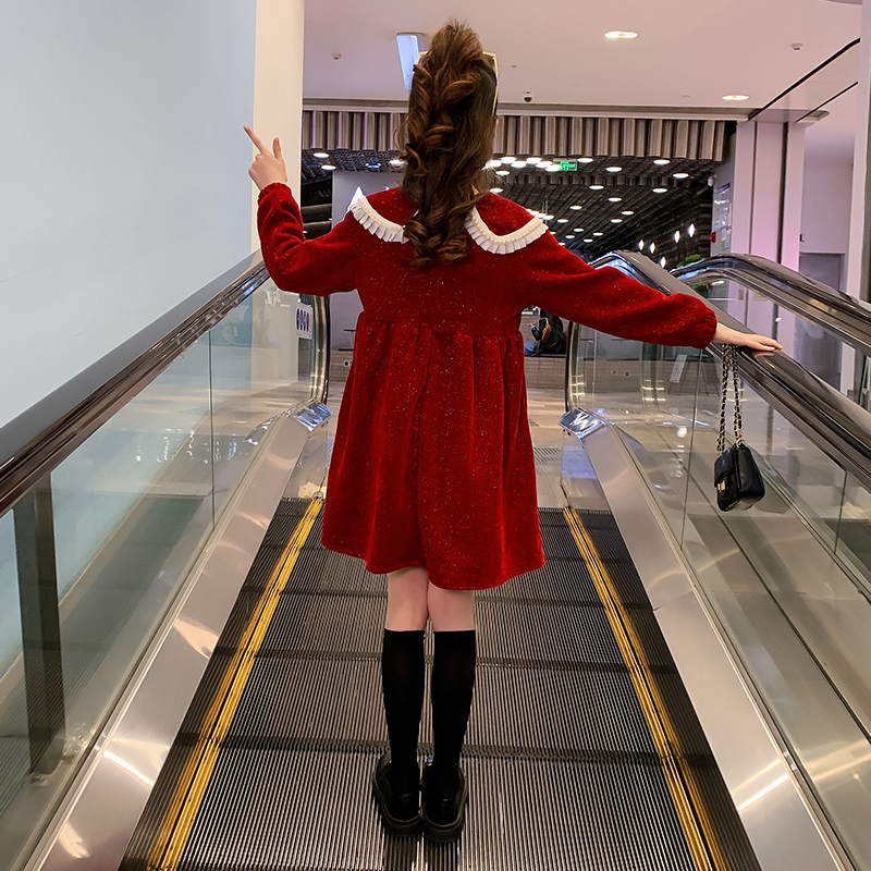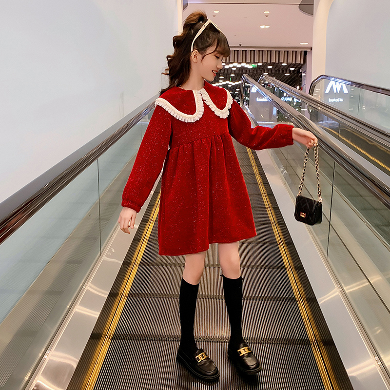 Girl's New Spring and Autumn Dress Girl Shinier Princess Han Yang Yang Children Dress Red Dress