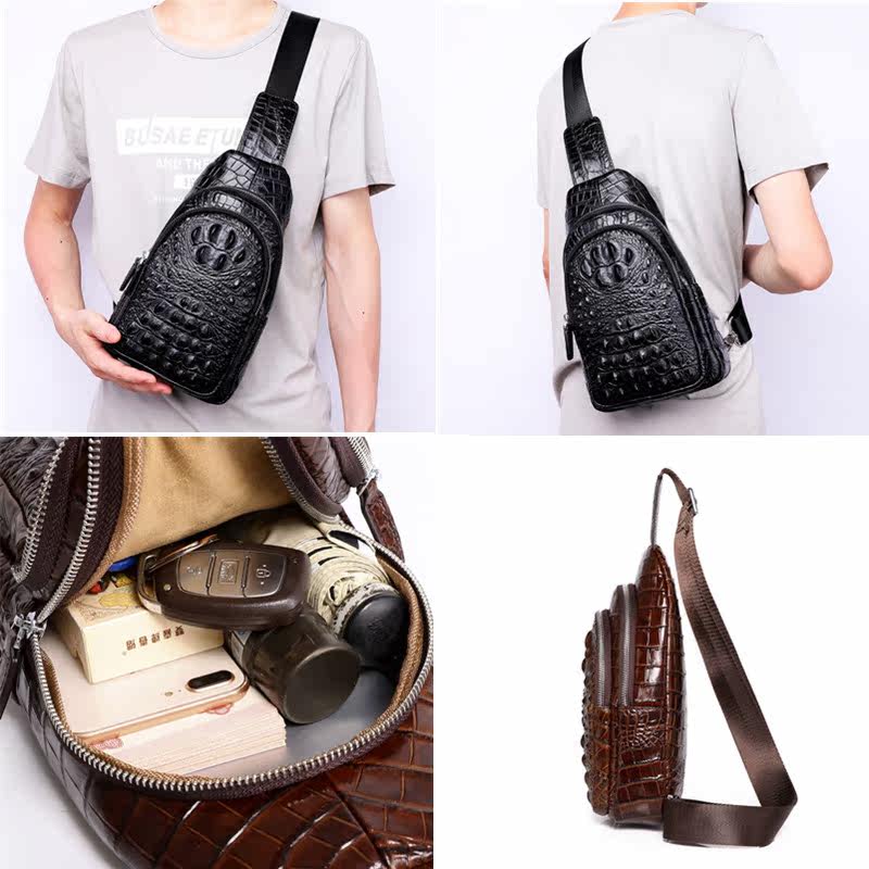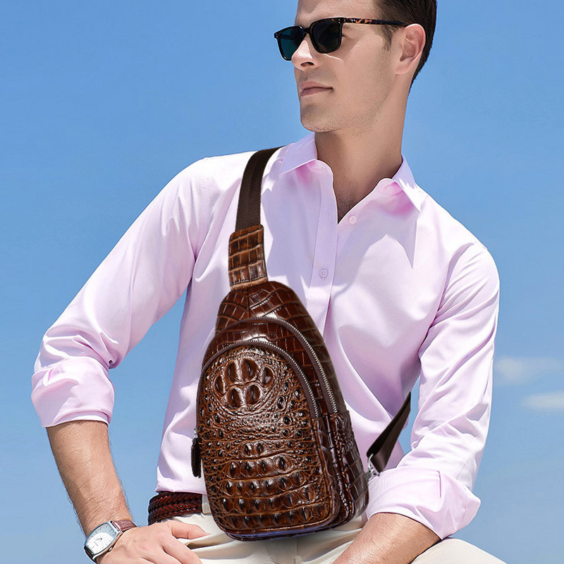 High-end crocodile bag chest bag men's leather trend fashion men's bag new backpack shoulder Messenger bag small bag chest bag