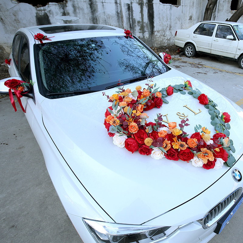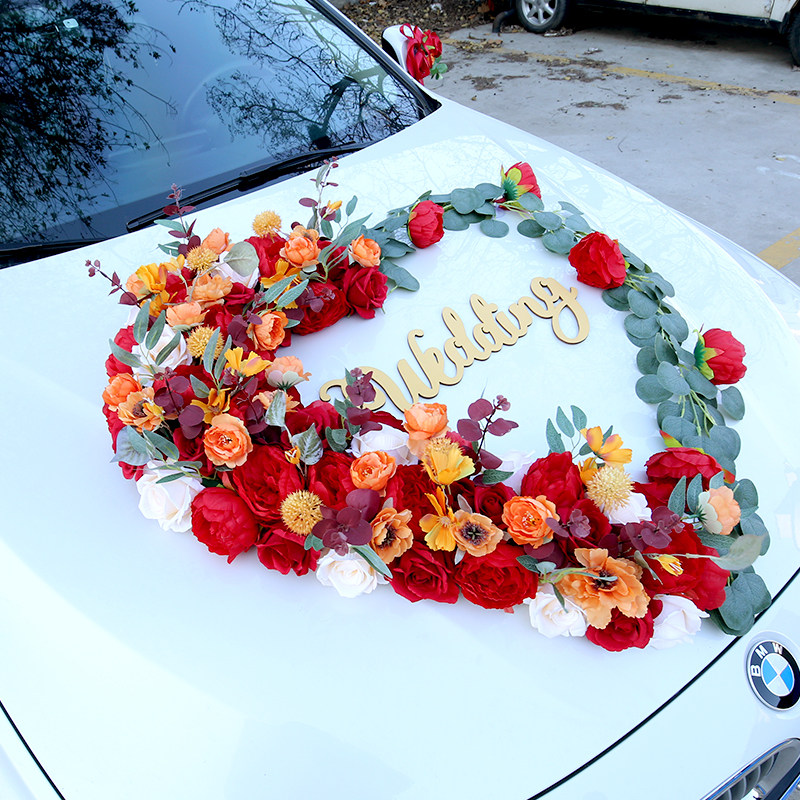 Red Chinese style heart-shaped main wedding gift car decoration Supplies cover Loading Head Flowers Wedding Head Caravan Pull Emulation Arrangement