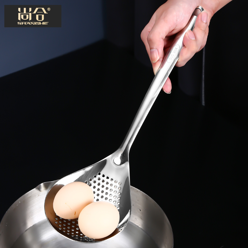 304 stainless steel mixed flour spoons kitchen Home integrated forming leakers spoons Divine Instrumental Long Handle Cooking Noodle strainer for water dumplings