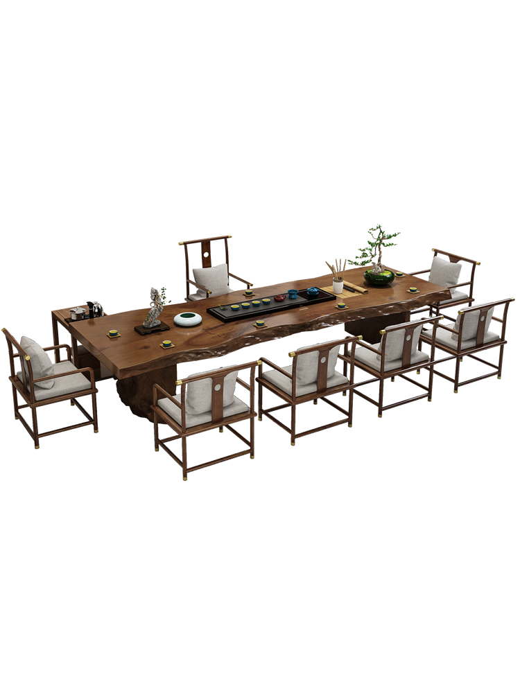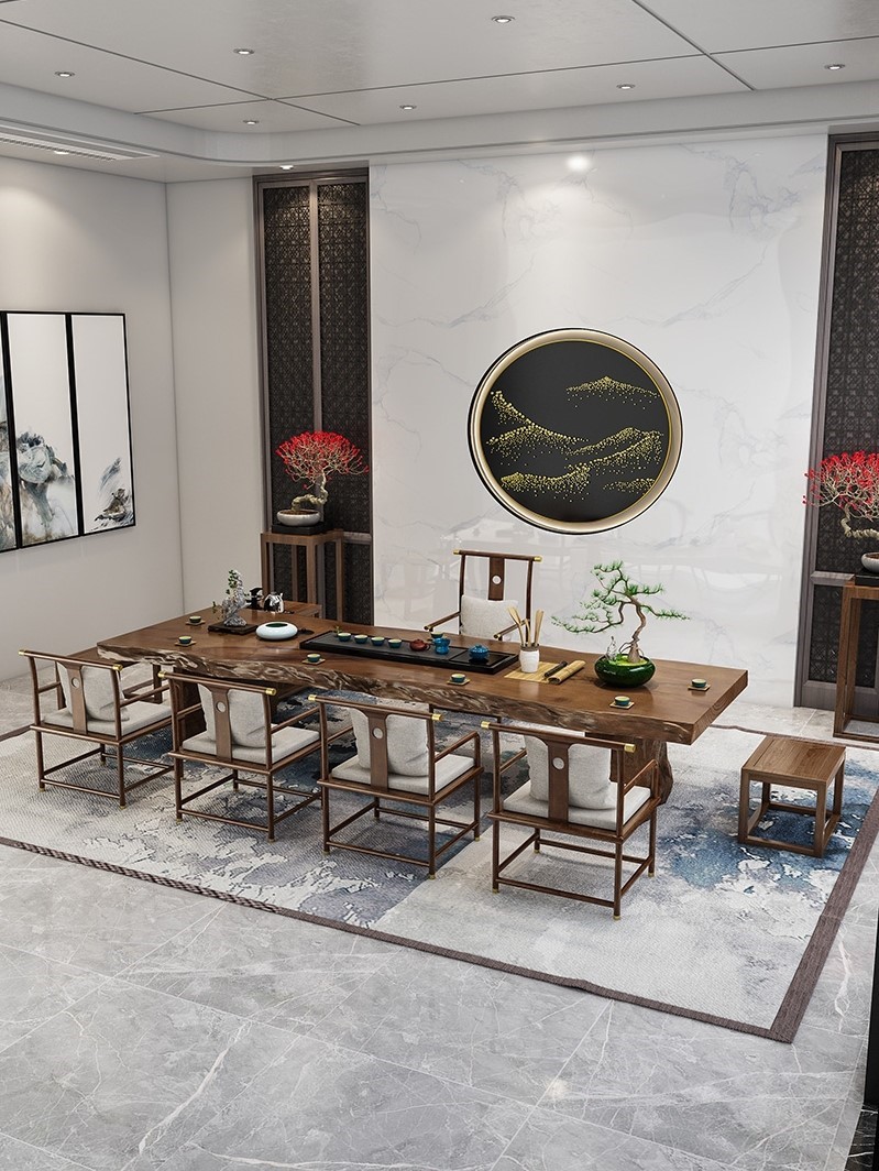 New Chinese Solid Wood Natural Side Large Plate Large Tea Table Zen Tea Bubble Table Tea Table And Chairs Office Combination