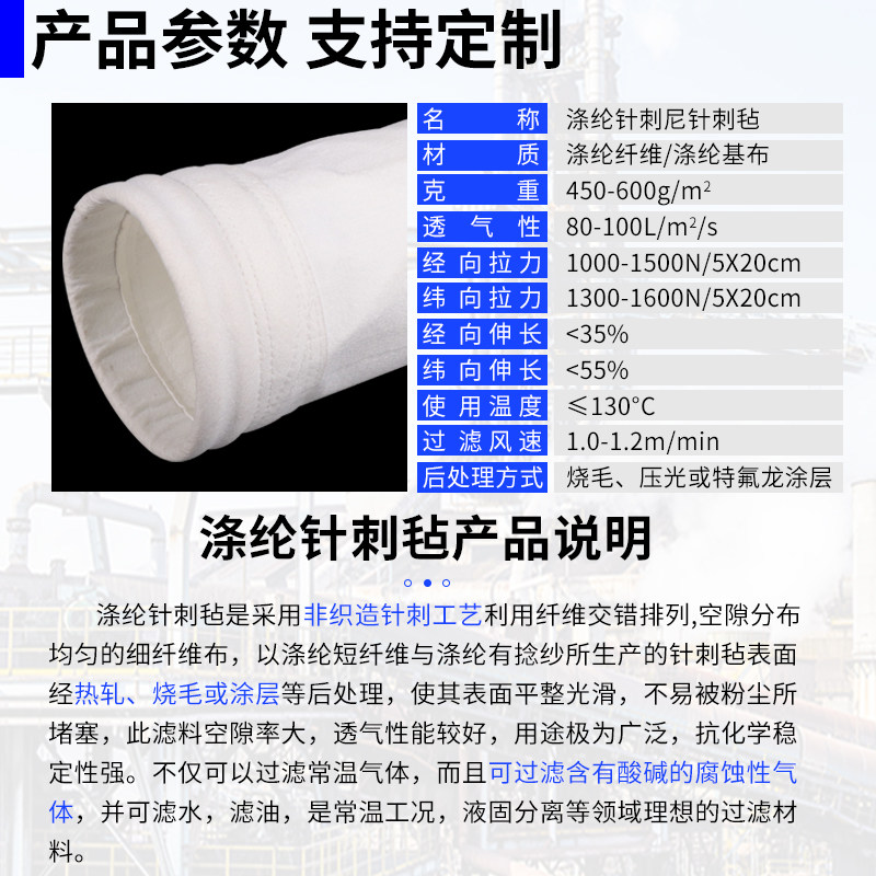 Dust Filter Bag Custom Blow Duster Polyester Fiber Needling Felt High Temperature Flumels Environmental Protection Dust Collection Bag Skeleton Coated Cloth Bag