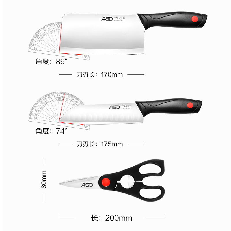 Love Shida Kitchen Knives Suit Combined Stainless Steel Kitchen Knife Sliced Butchery Knife Home Three Full Set Scissors
