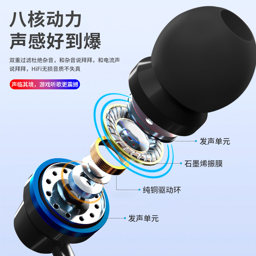 Headphones wired in ear style high sound quality typec applicable Huawei oppo Xiaomi vivo glory 50 red rice k40 mobile phone computer game girls with wheat original dress Android round hole noise reduction song-Ta