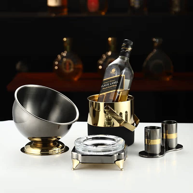Electroplating black KTV table supplies full set of stainless steel desktop snack dish fruit plate rack microphone rack ashtray commercial