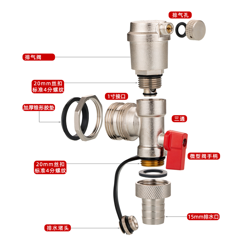 Full copper ground warm water distributor Automatic deflation vent valve Geothermal drain valve Heating water drain valve 1 inch tail piece-Taobao