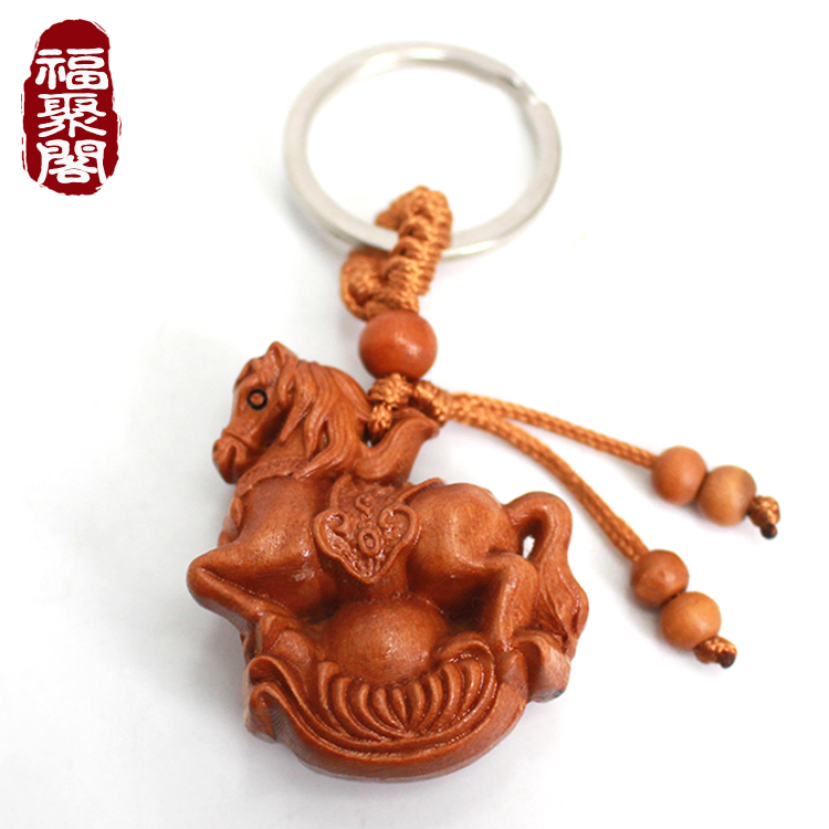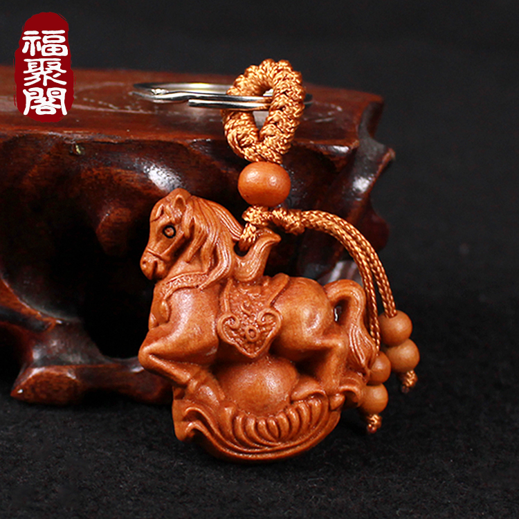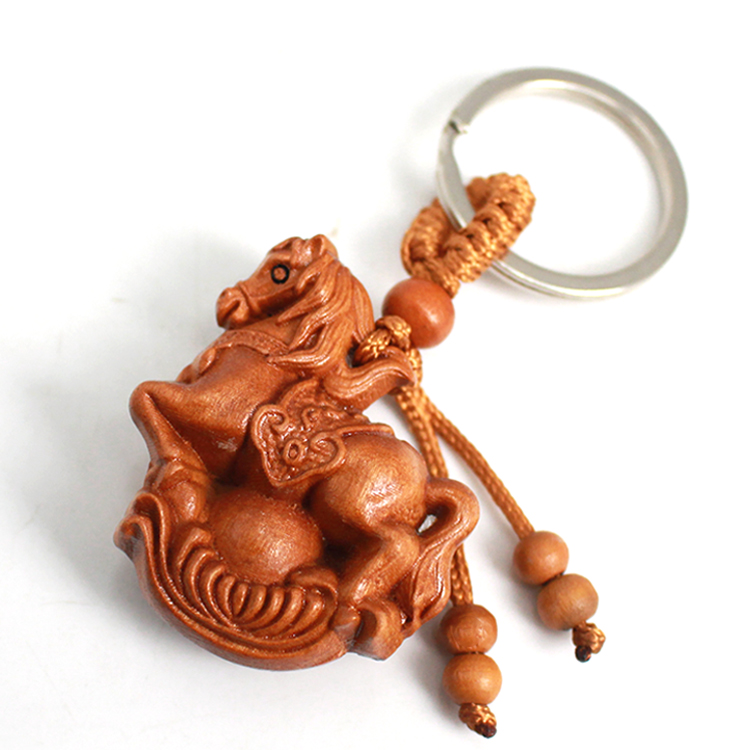 Peach Trojan key buckle Ma to successful necklace wood carving zodiac horse-hanging ornament solid pendant belongs to horse mascot