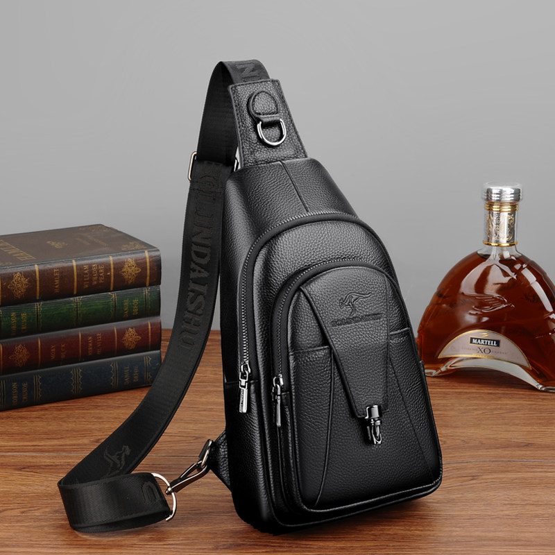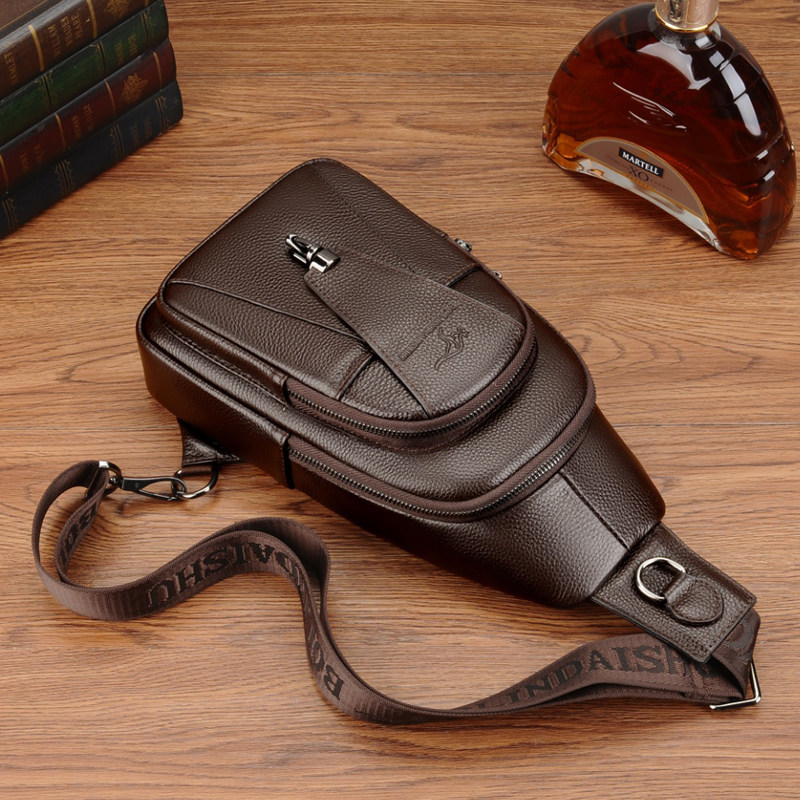 Head Layer Bull Leather Men's Chest Bag Business Casual Single Shoulder Bag Genuine Leather Chest Front Inclined Satchel Soft Bag Chest Bag Men's Bag