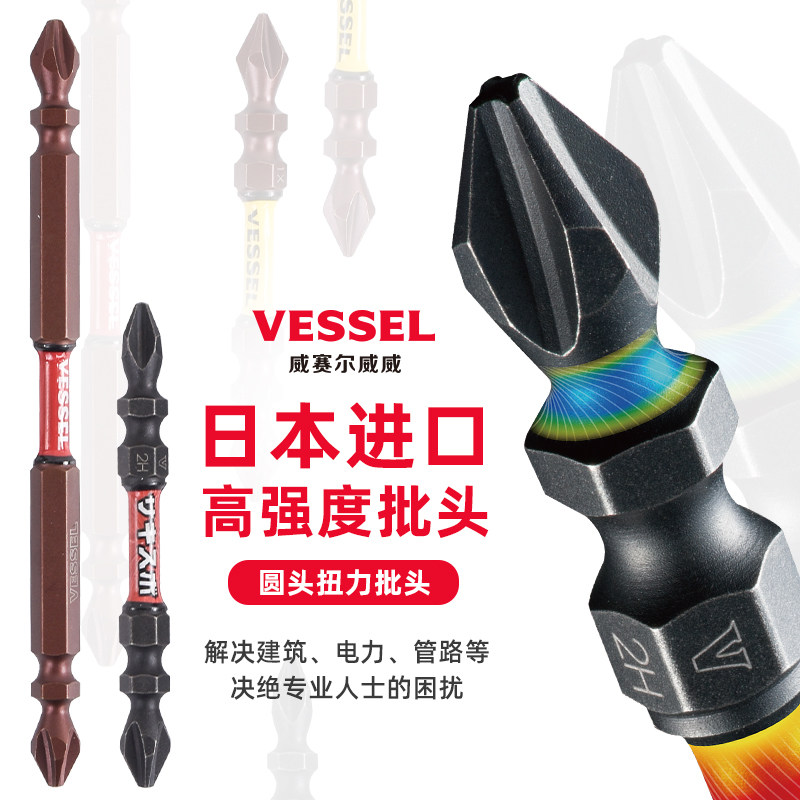Japan Weiwei VESSEL Batch of Head Double Truns Electric Batch Head High Hardness Super Power Torque Screwdriver PH2
