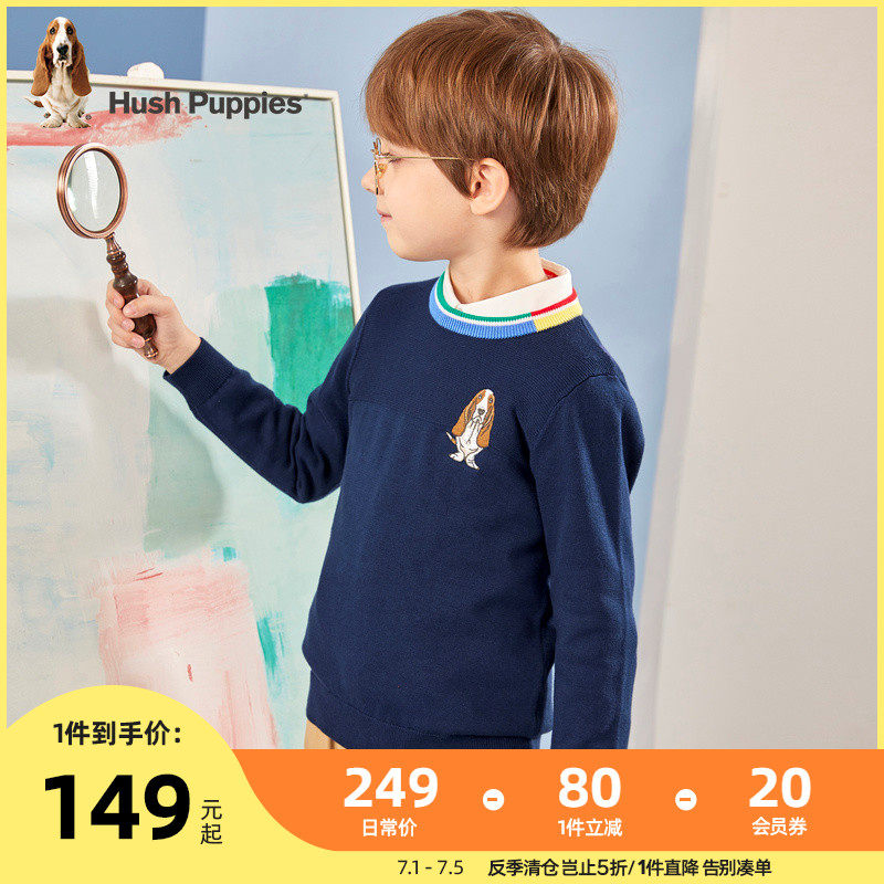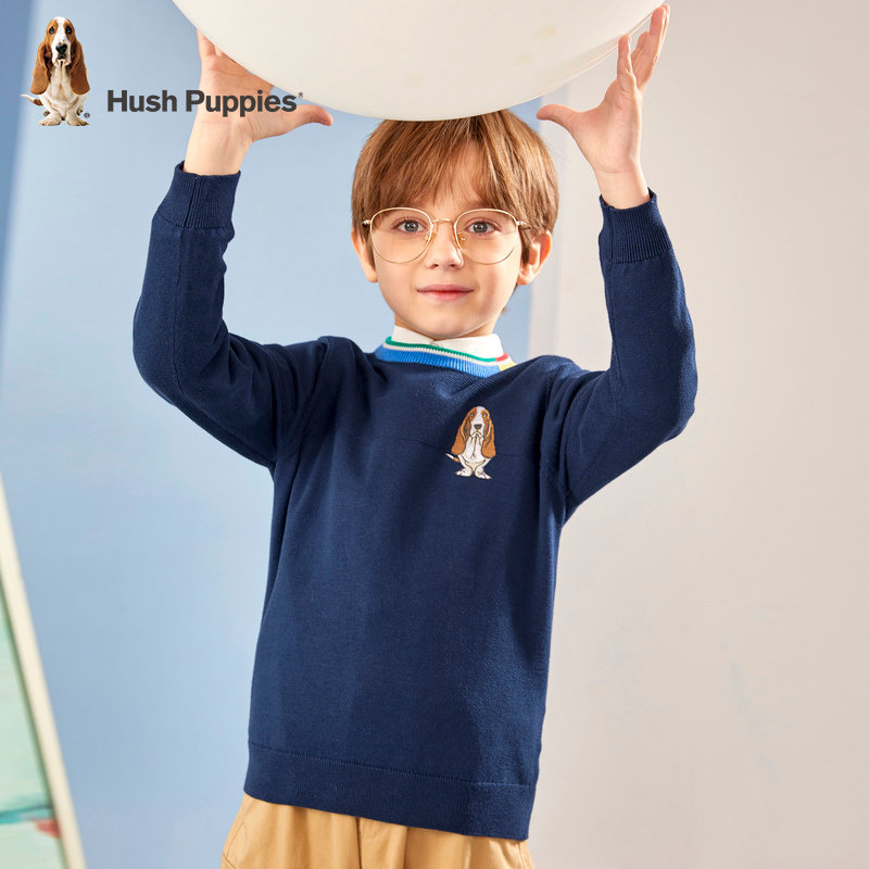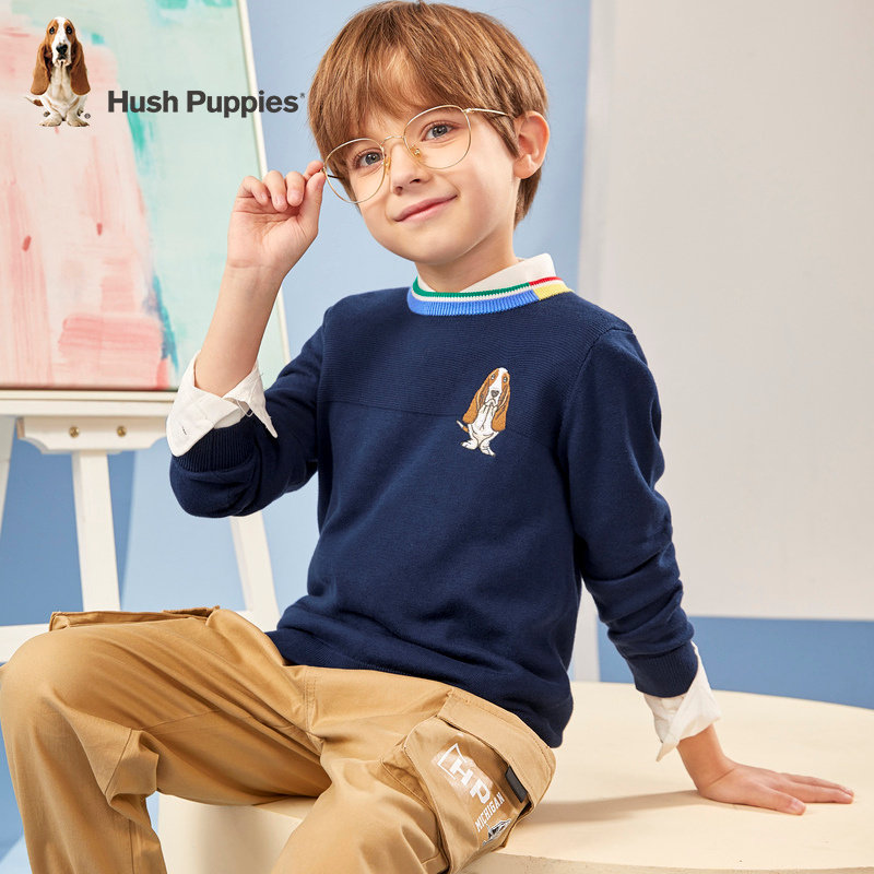 Leisure Steps Children's Clothing Boy Sanitary Clothes 2022 Autumn Clothing New Children Dazzling Neckline Blouses Big Child Minimalist Jersey Knitwear