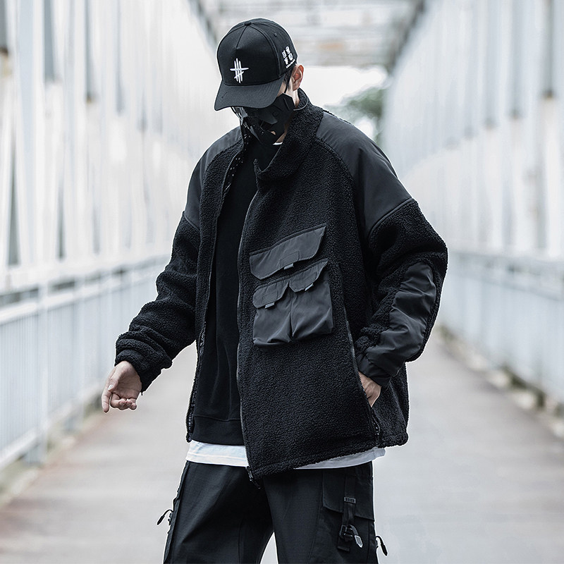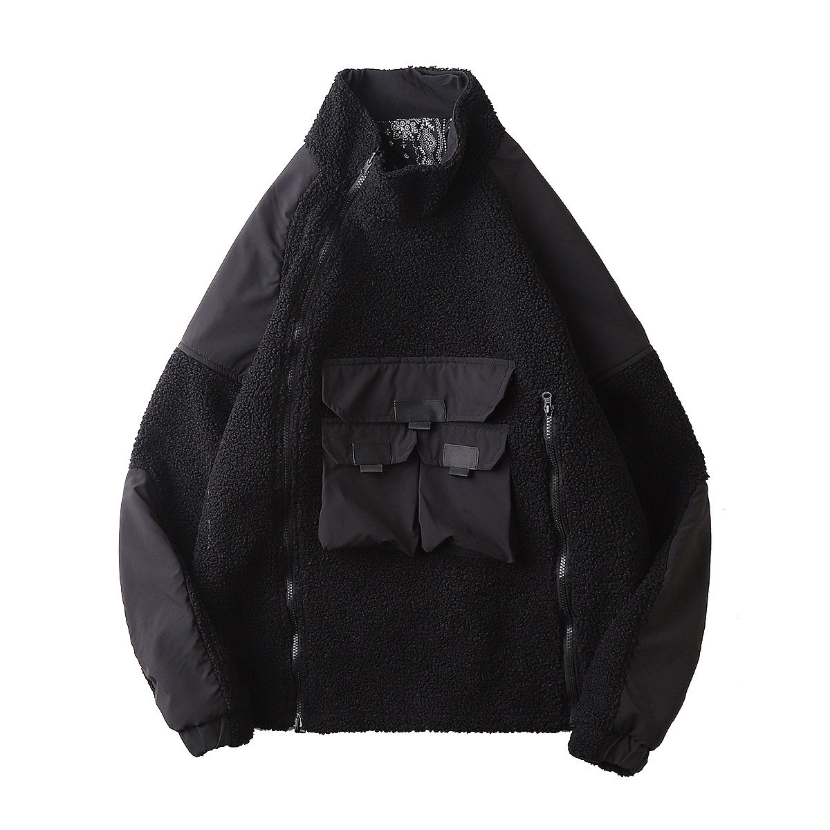AOGZ National Tide Lamb Wool Wool Suit Men's Autumn Winter Plus Suede Thickened Tooling Cotton Clothes Two Sides Wearing Loose Collar Jacket-Taobao