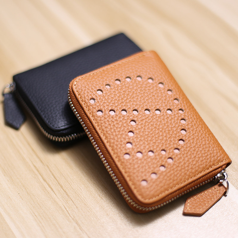 New front layer cowhide men's and women's short clip leather coin bag driver's license one-piece card bag
