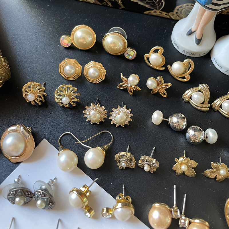vintage Western Antique Ocean and Mei in Harbour Wedding Dinner with Middle Antique Pearl Ear Nail Clip W9