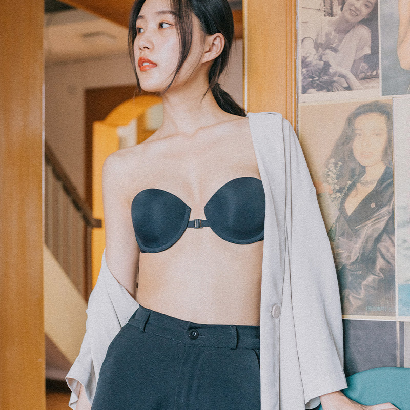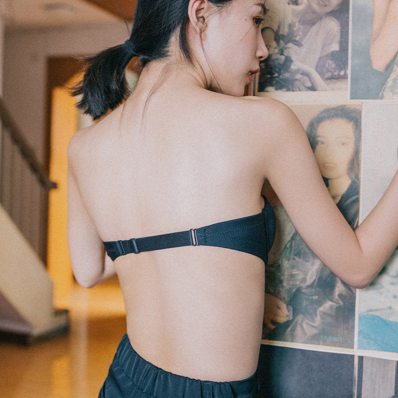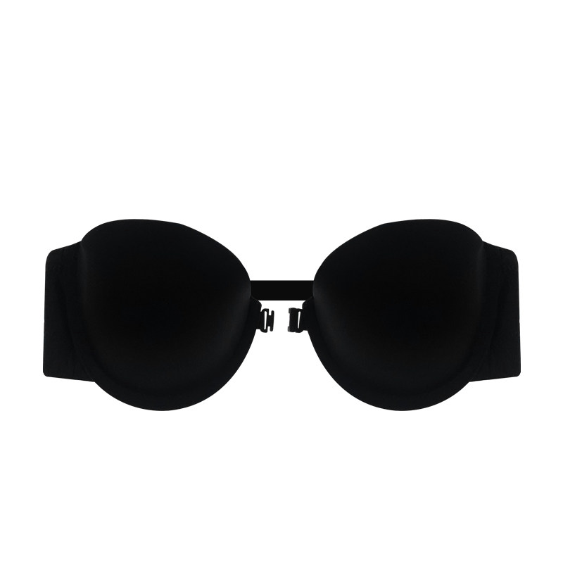Front buttoned lingerie woman small breasts gathered to rub chest invisible without shoulder strap open back non-slip bra glossy bra black