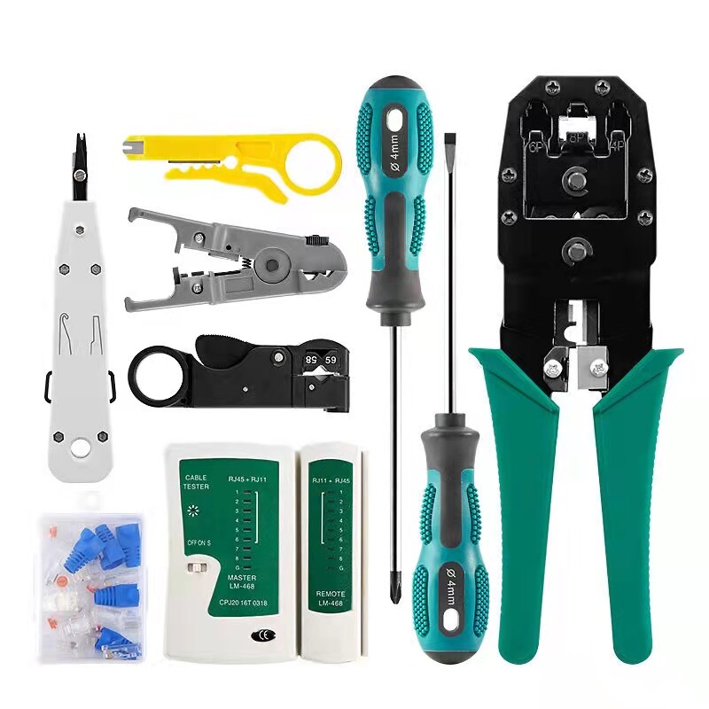 Enlighteer Five Gold Tools Combo Package Network Route Combination Tool Internet Installation Kit Mesh Route Press Wire Pliers Suit