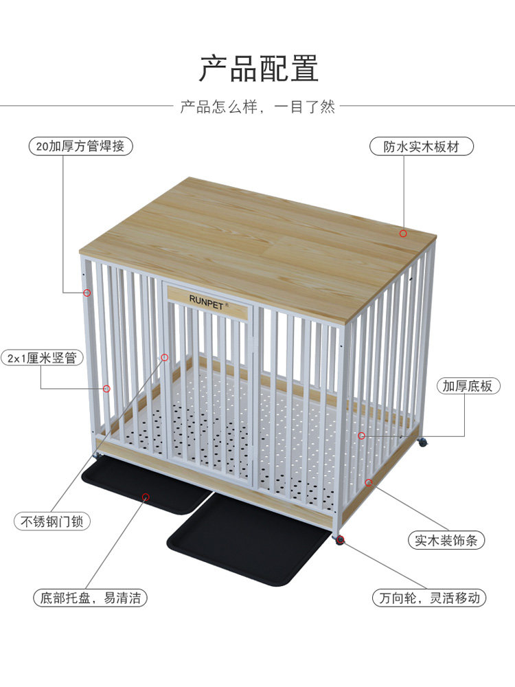 Dog Cage Sub Large Dog Fencing Fence Small Dog Midsize Dog Full Square Tube Plus Coarse Pet Cage Gold Mattedi Interior