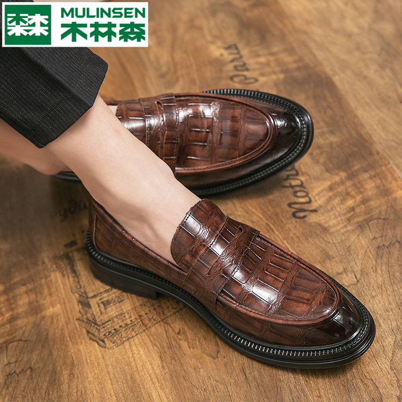 Wooden Lin Shoes Business Winter Leisure Lazy Englishman Wind Big size tip married brown men shoes
