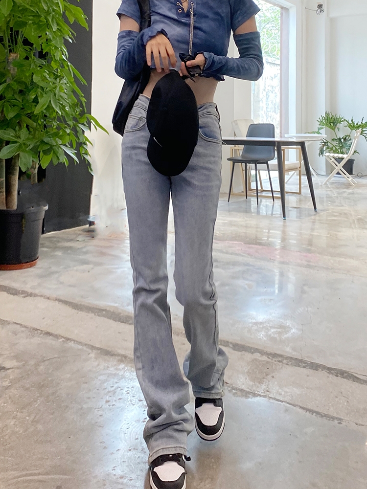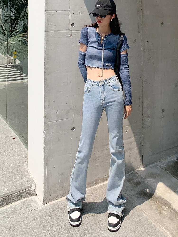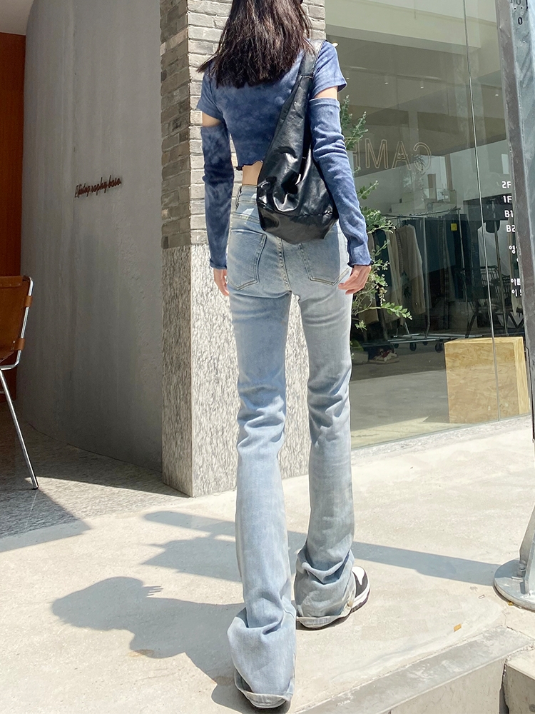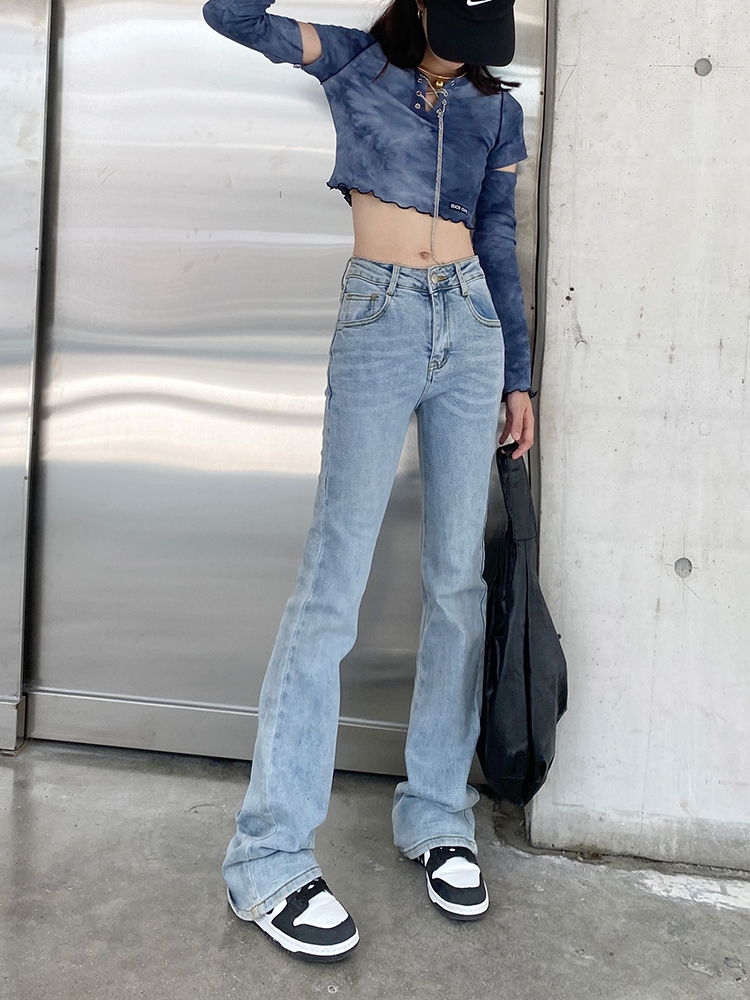 RJVO jeans women's high waist 2022 spring and autumn new mint blue slimming lengthened elastic flared mopping trousers