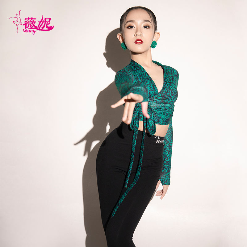 Winnie 2022 New Latin dance suit pants Snake print long sleeve blouse to practice the girl's spring and summer suit