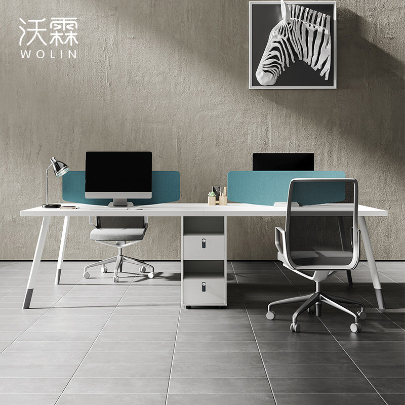 Minimalist Modern Staff Desk Chair Composition station Office Screen Screen Cassette Four employees Finance Table