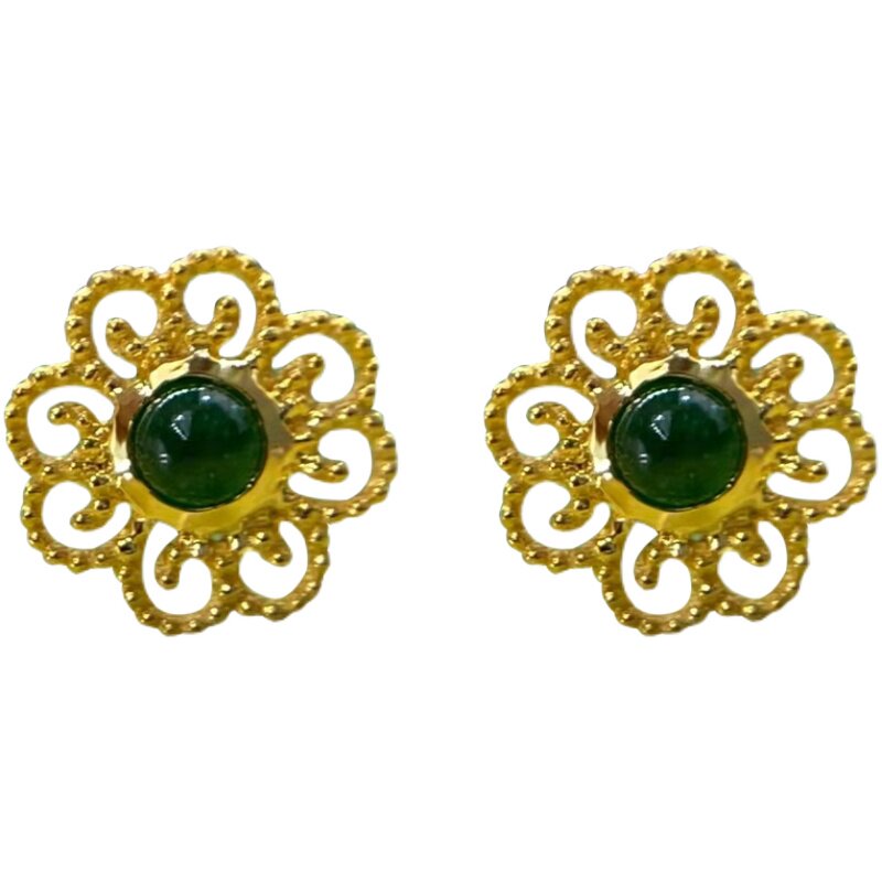 Emerald ear pin 18k gold inlaid ice egg face earrings women's thick gold yang green small earrings small and exquisite all-match