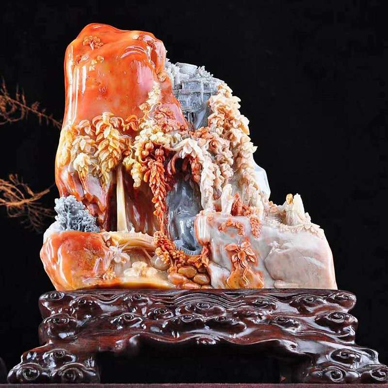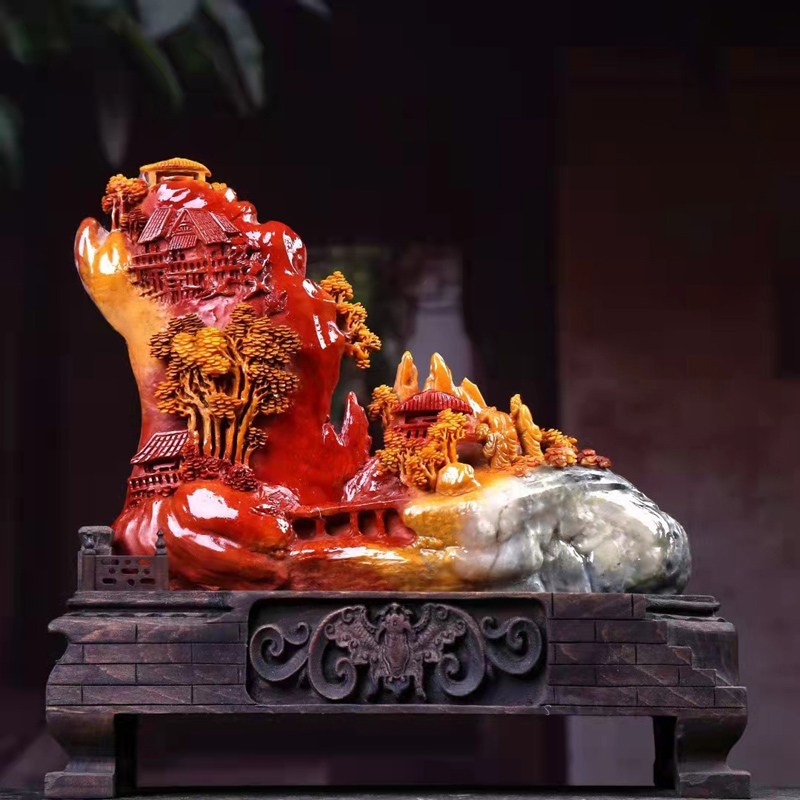 Natural Shoushan Stone Ornament Seal Carving Tian Huangshi Jade Housewarming Opening Gifts Lucky Town House Crafts