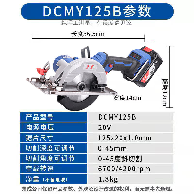 East Chengdu 20V lithium electric circular sawing machine 5 inch wireless brushless charging hand saw wood cutting machine 125 disc saw