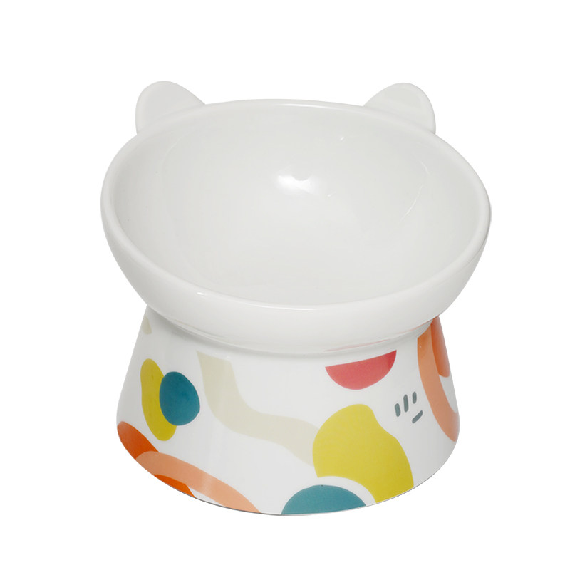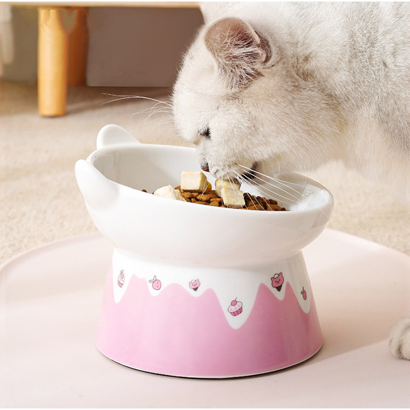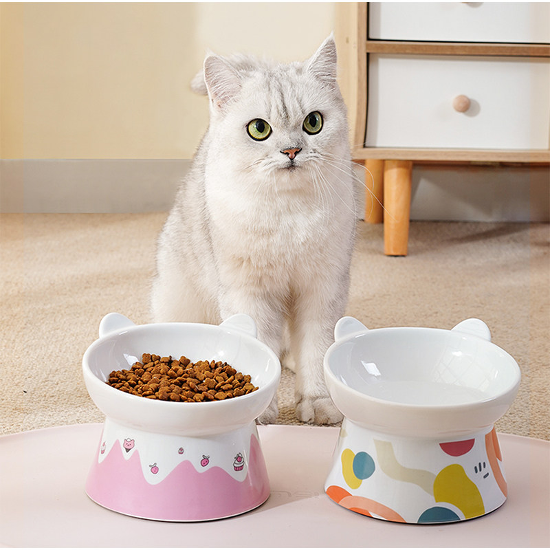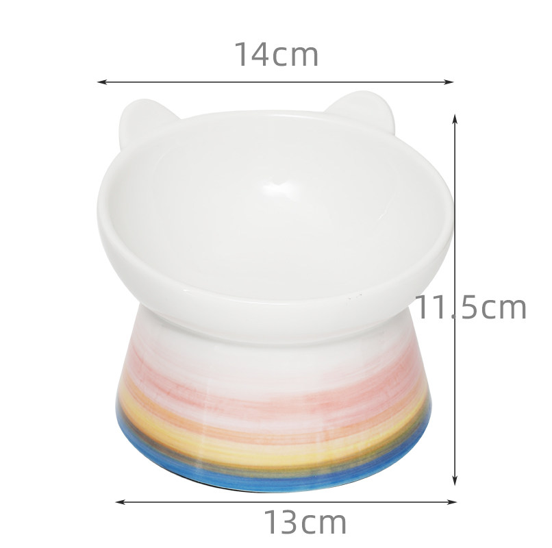 Cat bowl ceramic cute gradient cat ears high feet neck protection not black chin anti overturning food and water pet cat bowl supplies