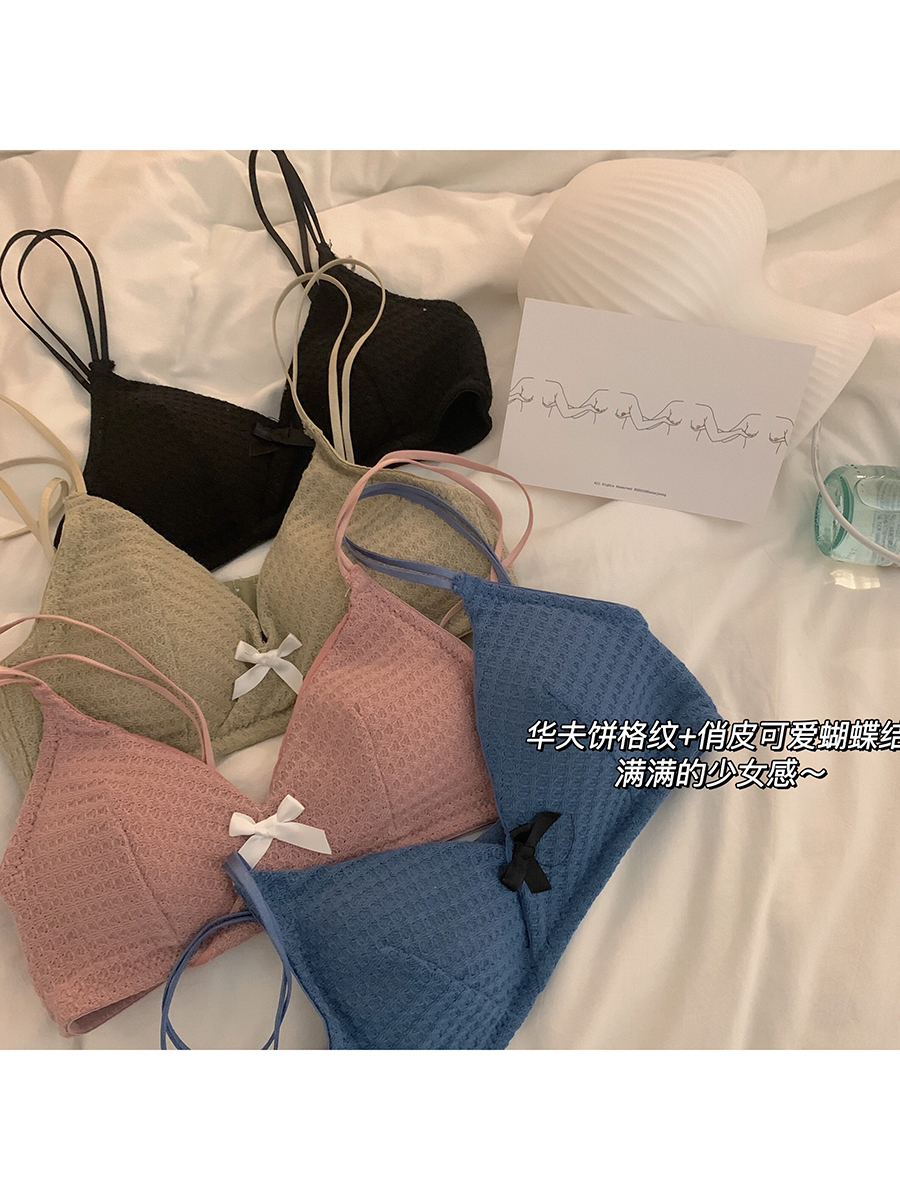 Xinbang help Bra Japanese bow check bra student comfortable bra women's underwire-free small chest gathering underwear