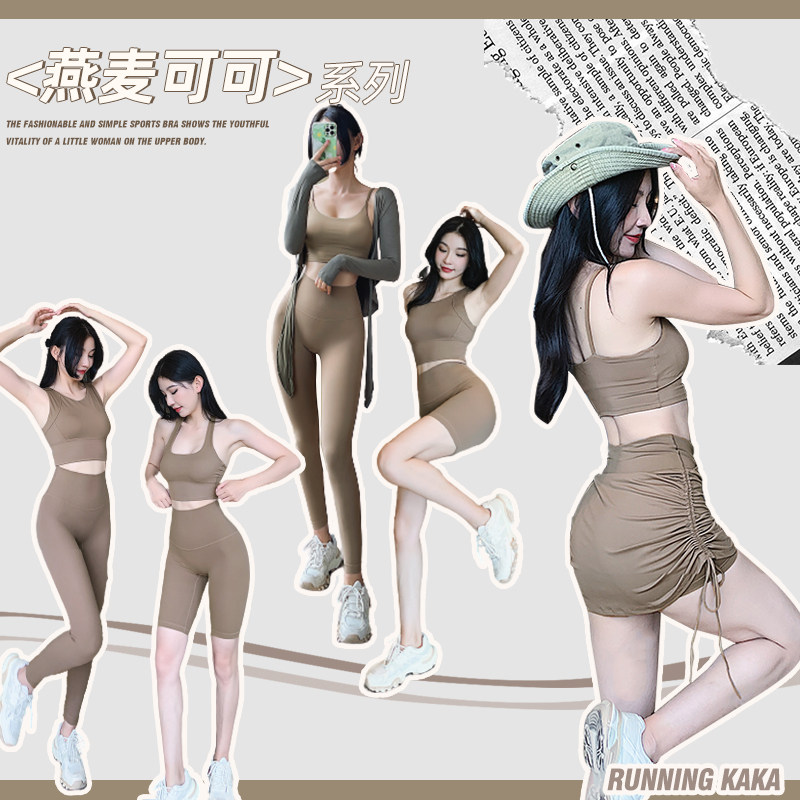 Run bar Kaka custom oatmeal coco high waist yoga pants women's tight sports peach nude fitness pants