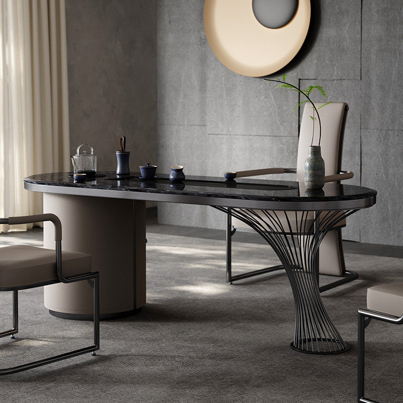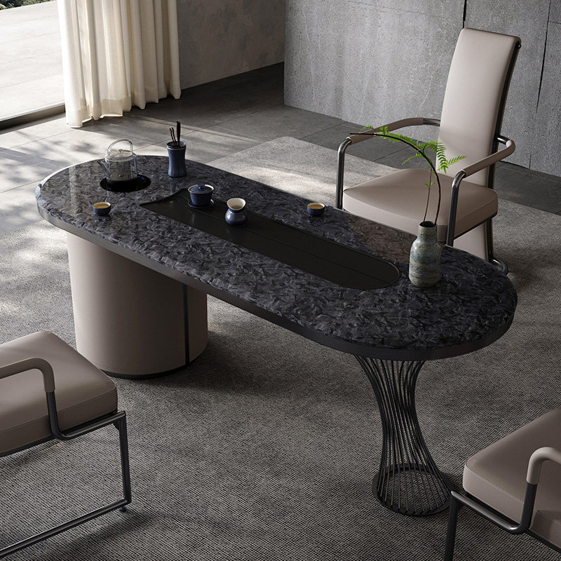 Kung Fu tea table combination modern minimalist balcony villa high-end design tea table integrated natural marble tea table