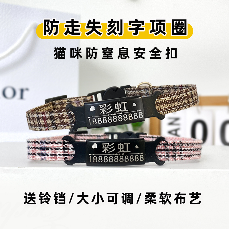 Blue lattice anti-suffocation collar ( lettering nameplate )Powder lattice anti-suffocation collar ( lettering nameplate )Black powder lattice anti-suffocation collar ( lettering nameplate ) Khaki brown lattice anti-suffocation collar ( lettering nameplate