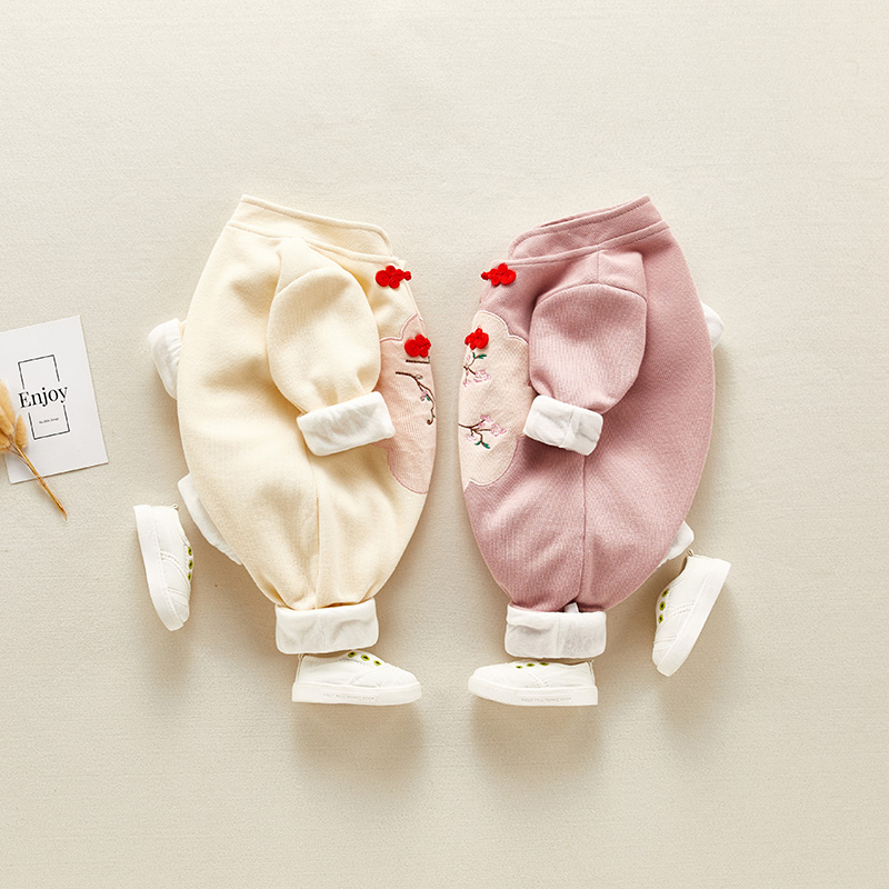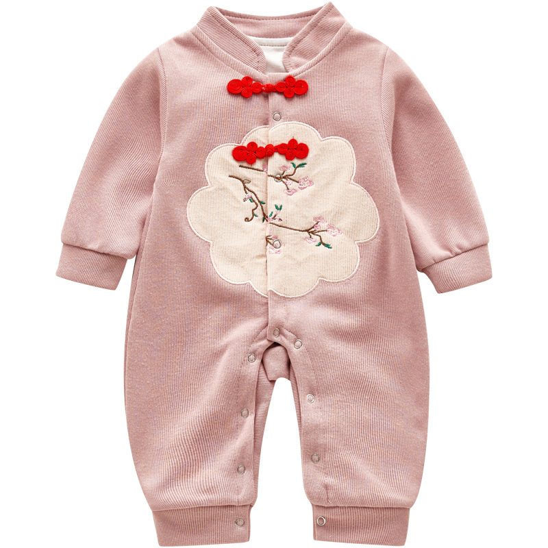 Baby autumn and winter baby clothes jumpsuit full moon hundred days one-year-old romper festive plus velvet cute outing clothes