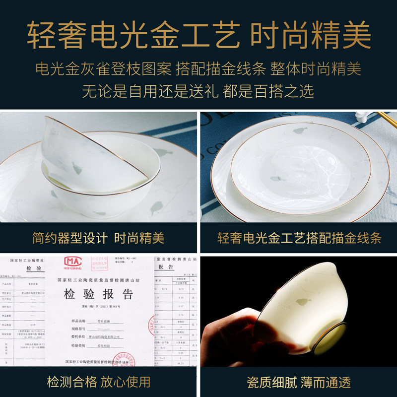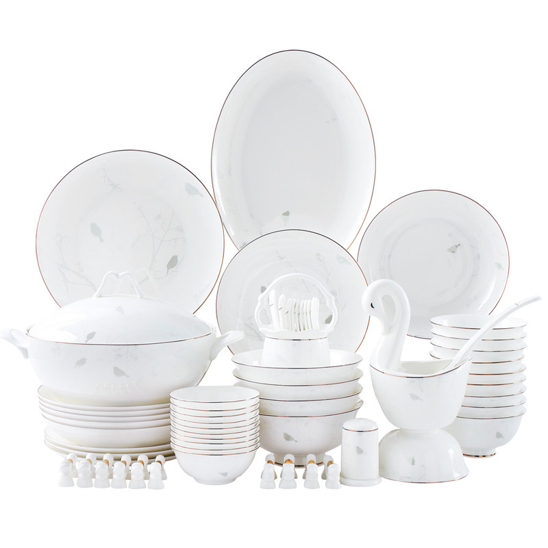 Bird Yue 60-head bone china tableware set gift box (microwave)