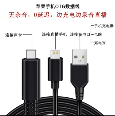 (Live while charging) Jinyun live sound card dedicated OTG transfer data cable is suitable for Apple Android