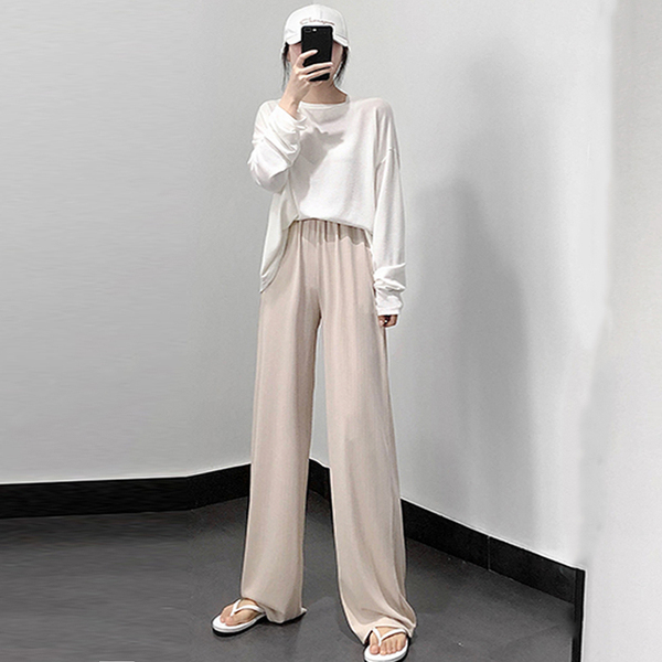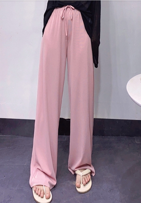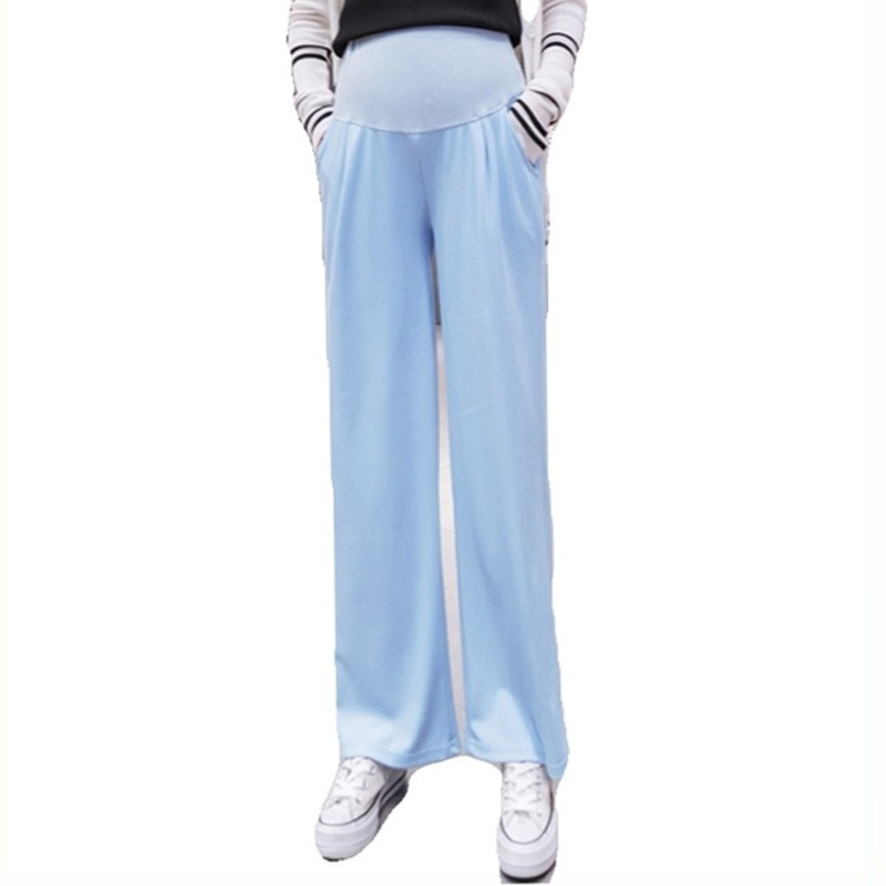 Large size pregnant women pants spring and summer ice wire broad legs wear abdominal net red and drop - off pants 200 pounds