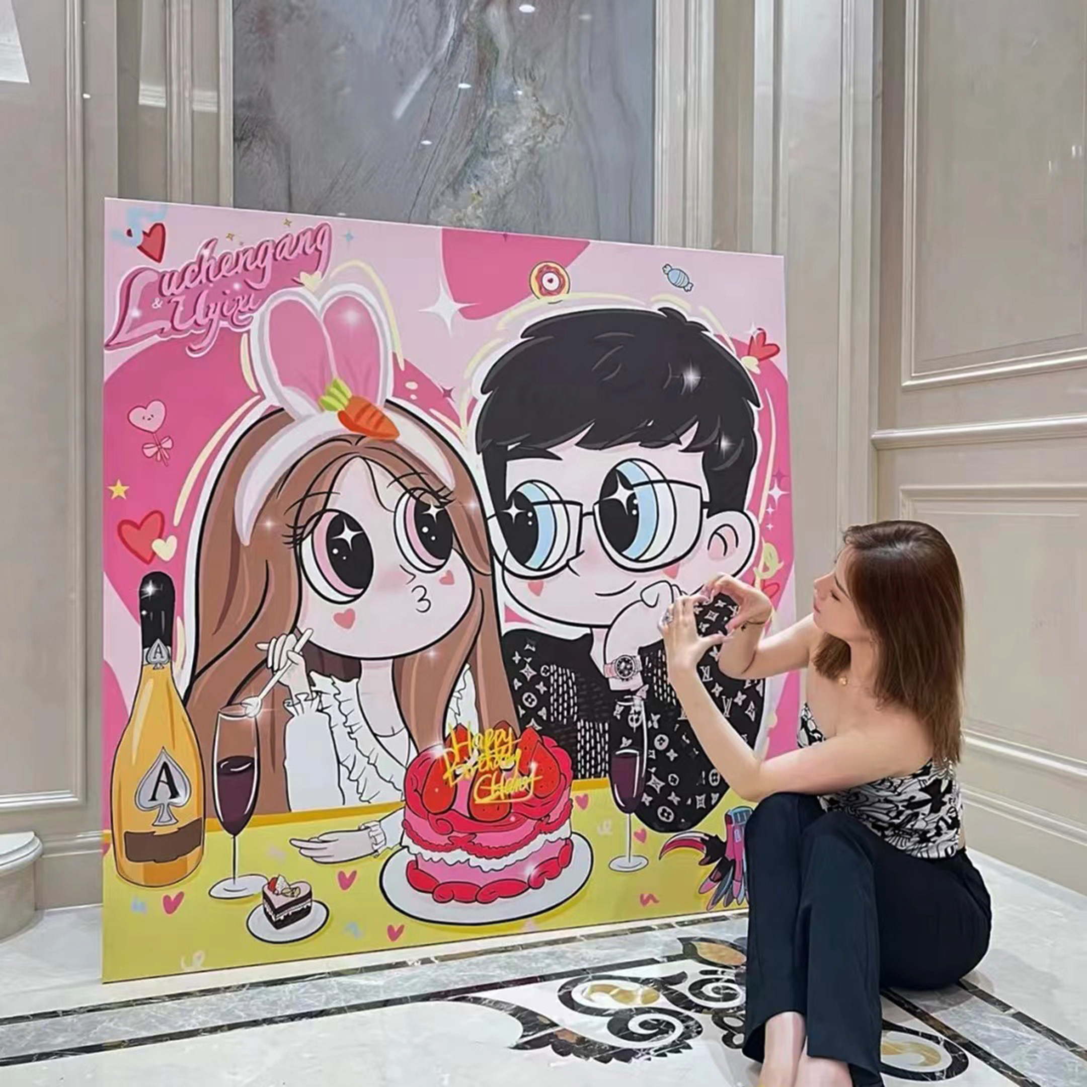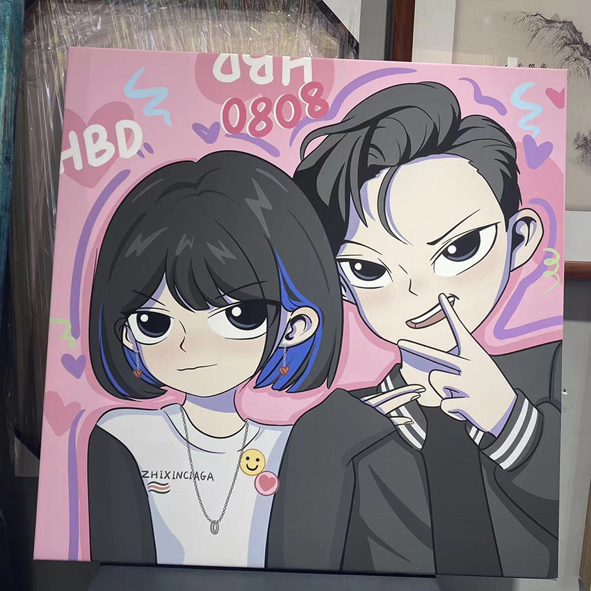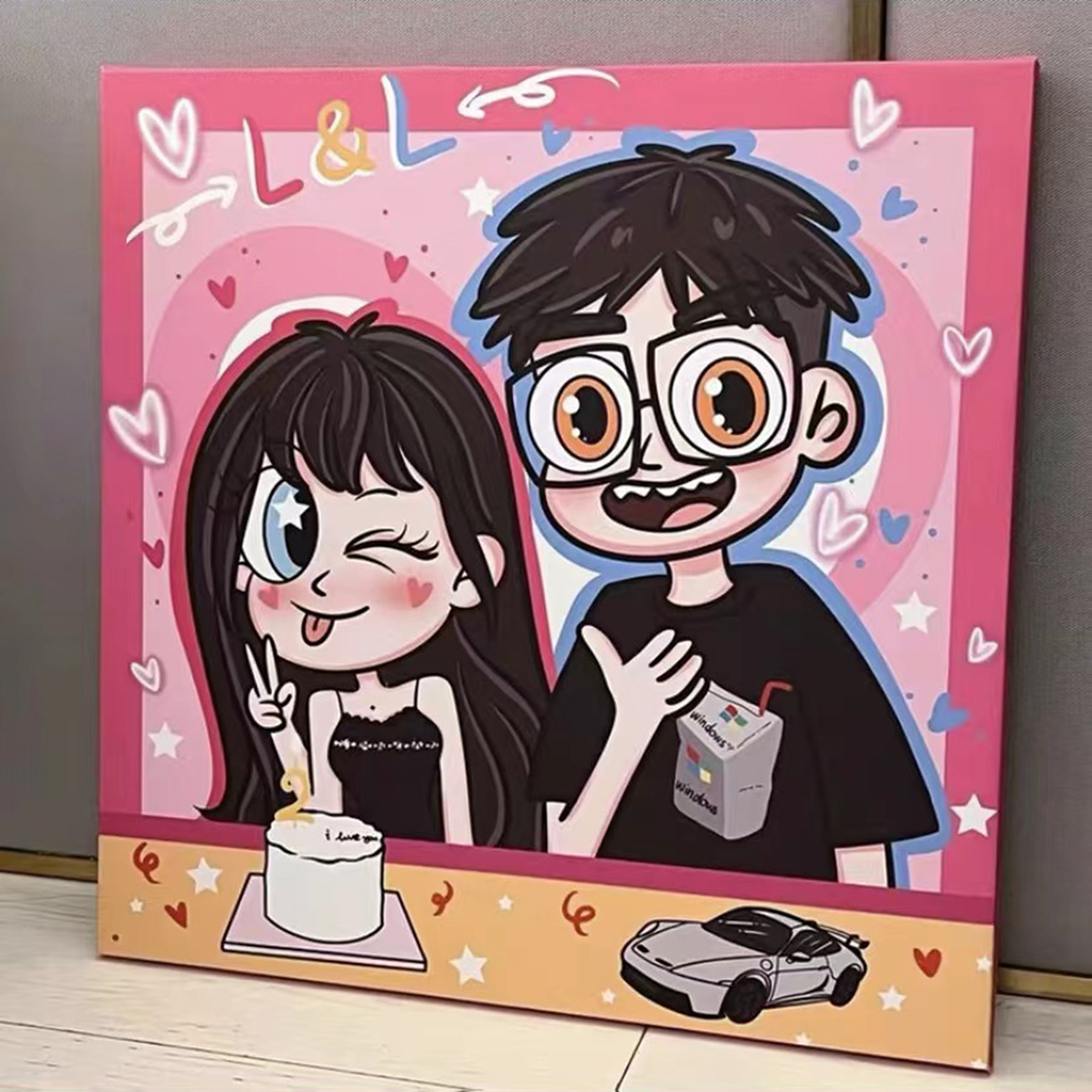 Flush head portrait hand-painted cartoon gift wedding baby photo size frameless picture frame hanging wall solid wood frame customization