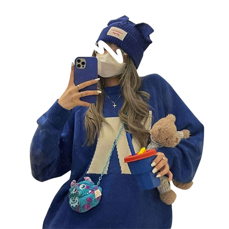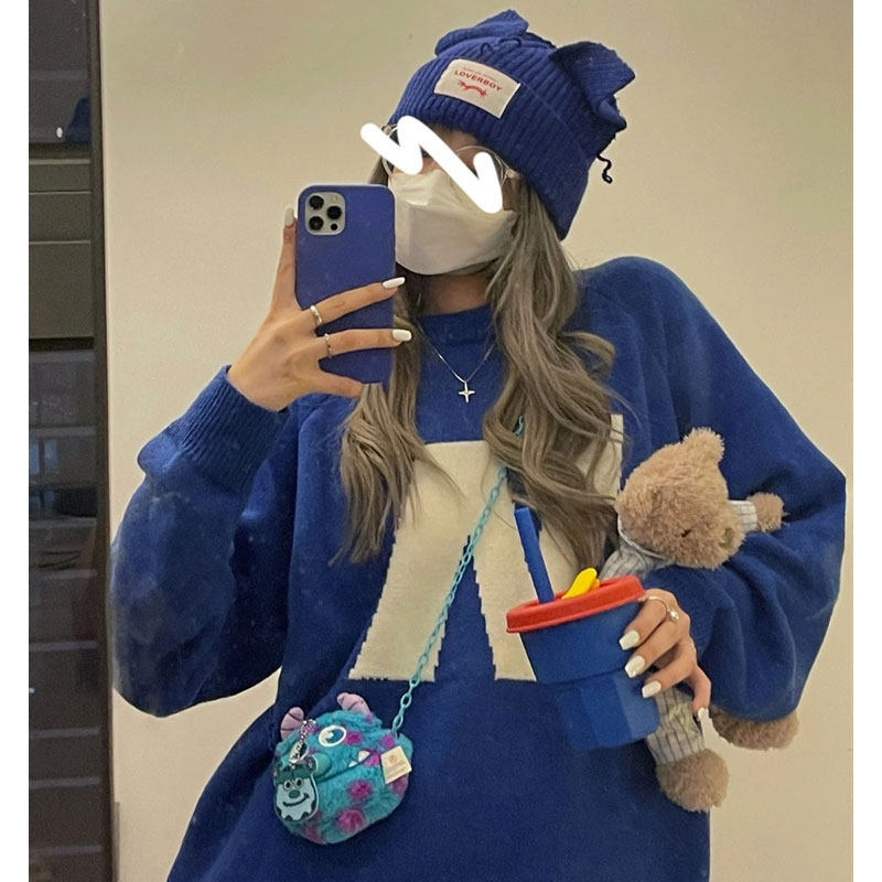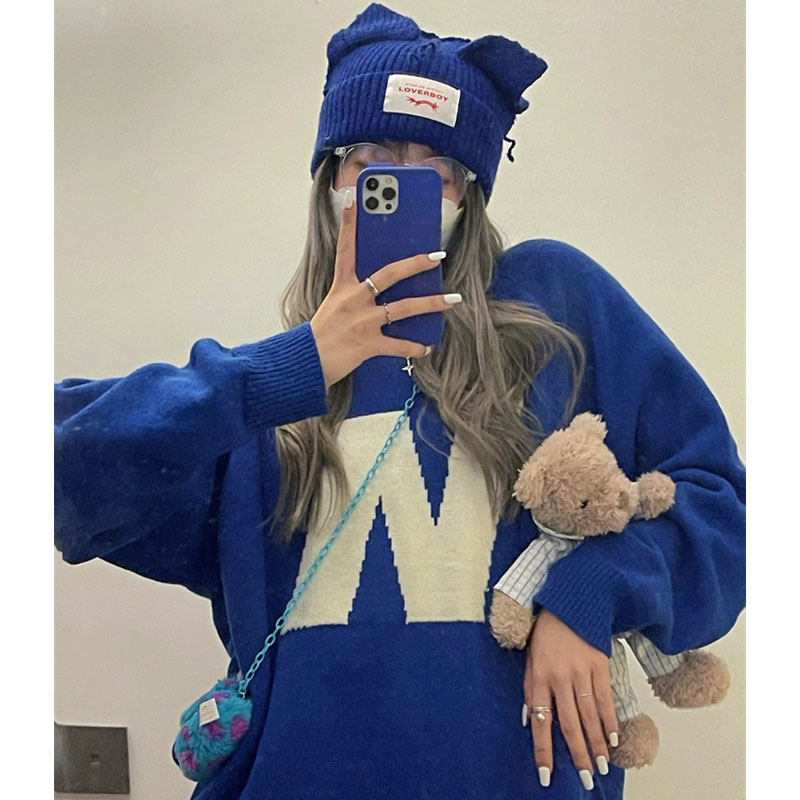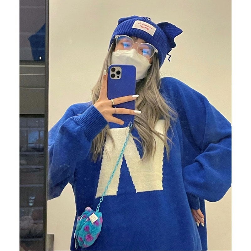 Klein blue sweater women in early spring 2022 New Lazy Windhooded headsweaters wear design with little crowdsourced design