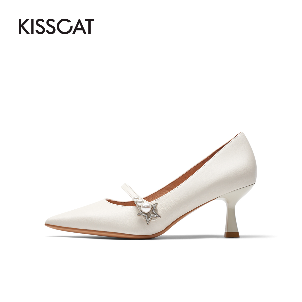 Kiss Cat High Heels Shoes Woman Shoes 2022 Spring Summer Season New Pearl Mary Jean Fairy Temperament Fine Heel Wrap Shoes