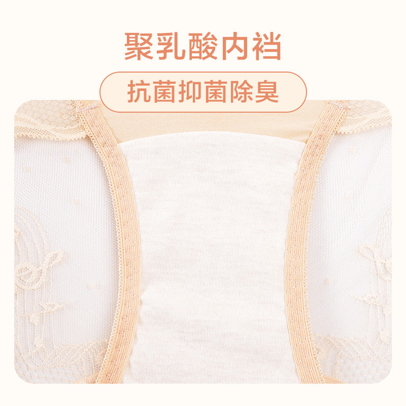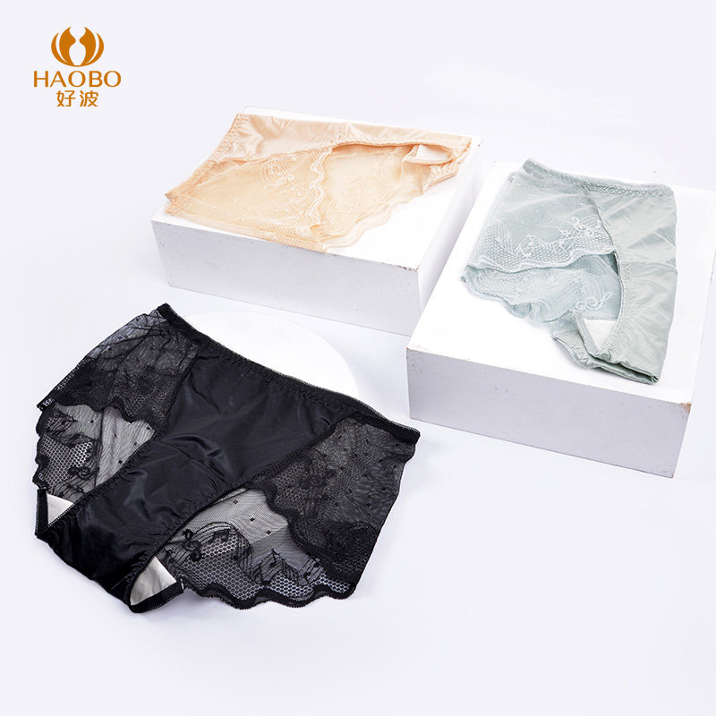 (RMB79 3 strips) Good Wave Underpants Ladies Lace Triangle Pants Woman Mid Low Waist Mesh Yarn Sexy Safety Pants HKW2168