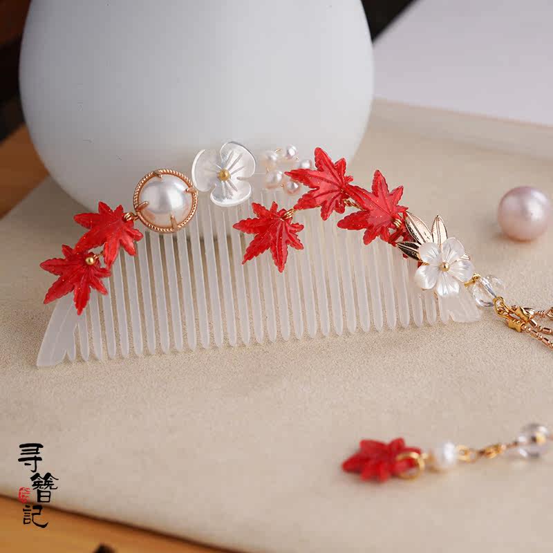 Find Hairpin Original Handmade Hanfu Accessories to Song Dynasty Tang Wind Imitation Jade Comb Hair Accessories Head Crown Headwear Red Maple Leaf Comb