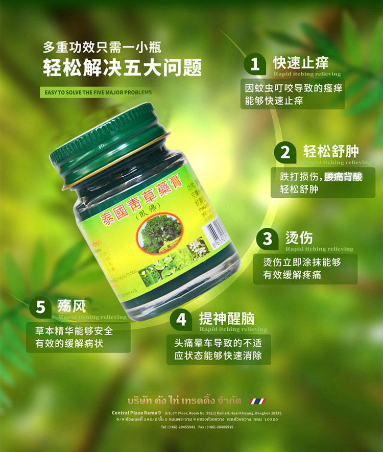Thai sleeper green straw cream for mosquito repellent, clear cold oil anti-mosquito bites green grass ointment 50 gr