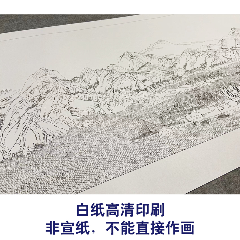 Thousand miles of rivers and mountains of the white drawing draft Wang Ximeng the whole volume of meticulous painting line draft physical white paper printed draft G042