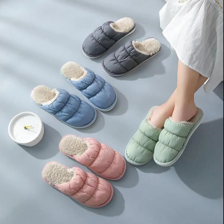 Cocoon ink Caterpillar bag ring cotton slippers Down jacket cloth upper PVC thickening non-slip Couple home shoes