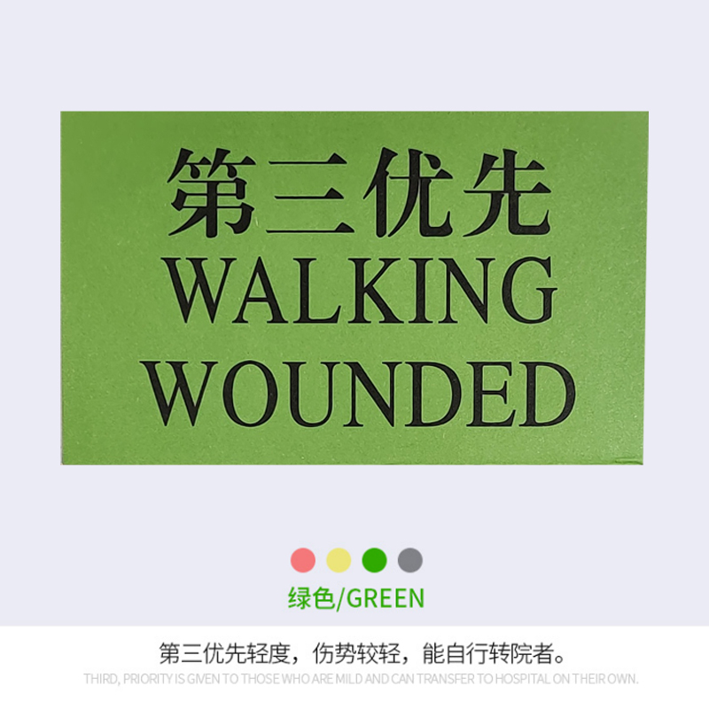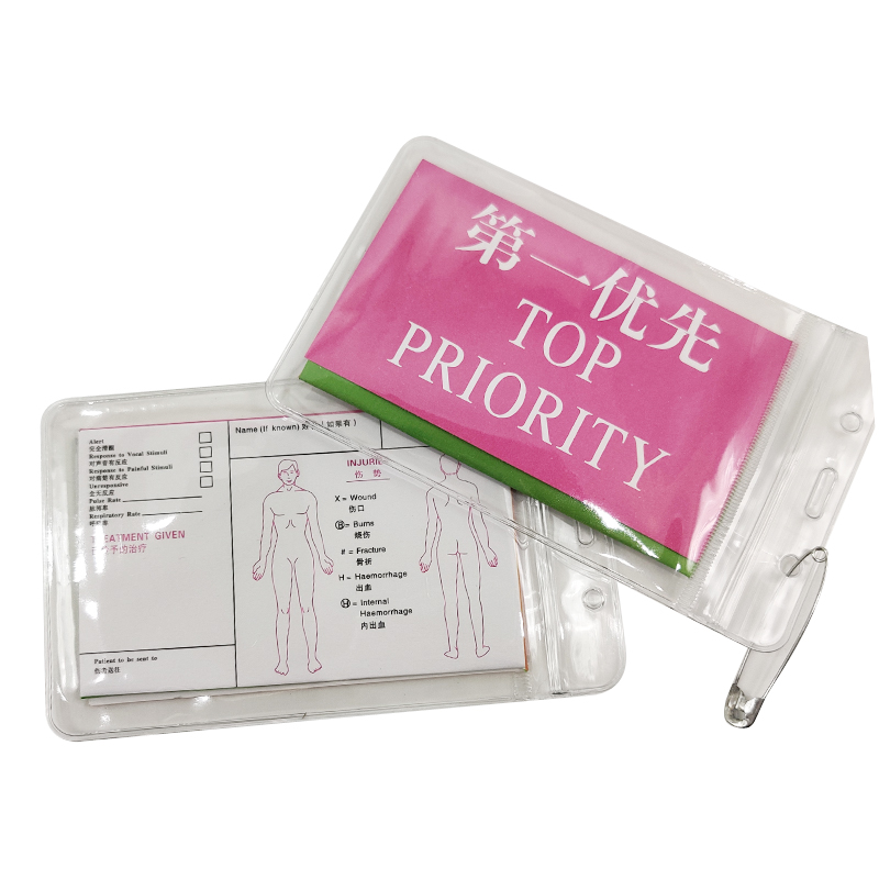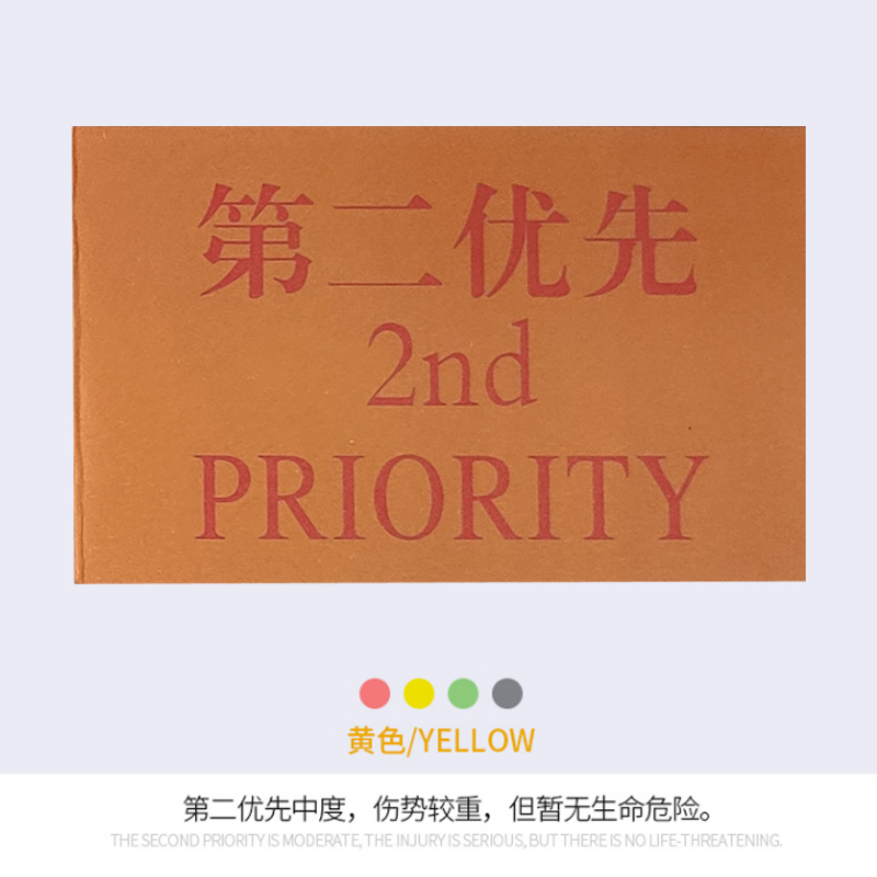 A set of emergency contact and triage cards for health emergency triage and identification of hospital-specific injury identification cards